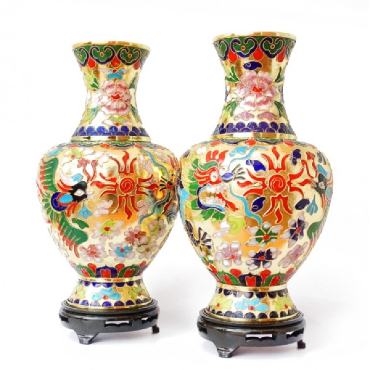 Дві вази на підставці перегородчаста емаль Дракон Фенікс