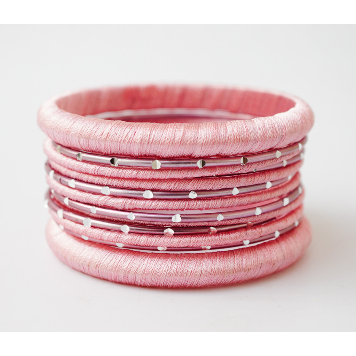 Комплект із 13 браслетів кільце в тканині Рожевий
