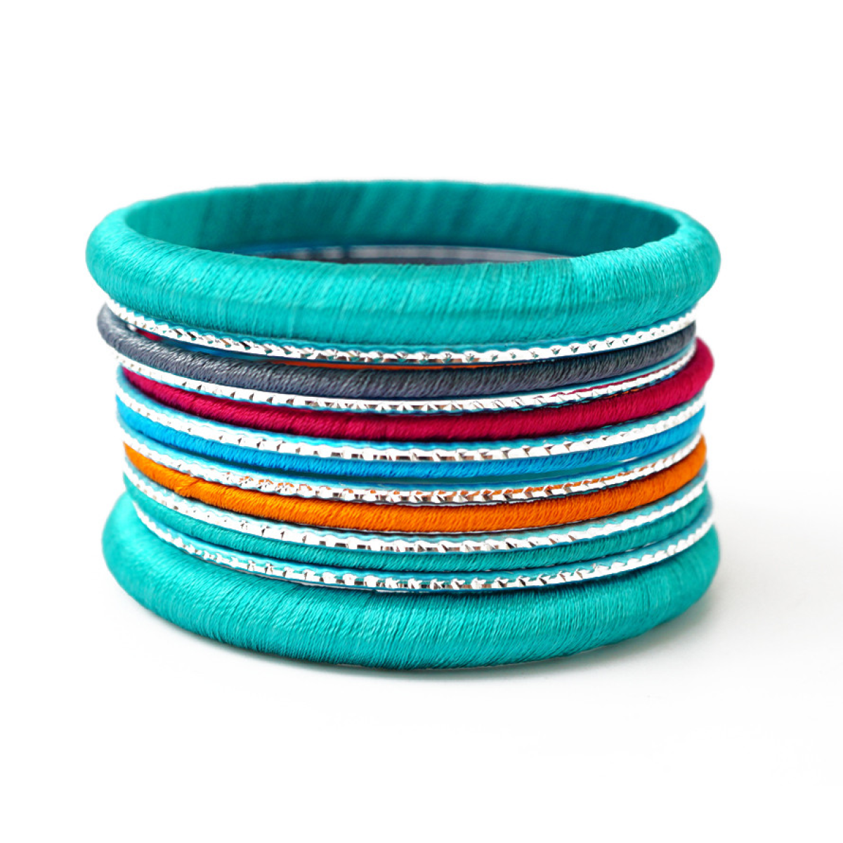 Комплект із 13 браслетів кільце в тканині Кольоровий
