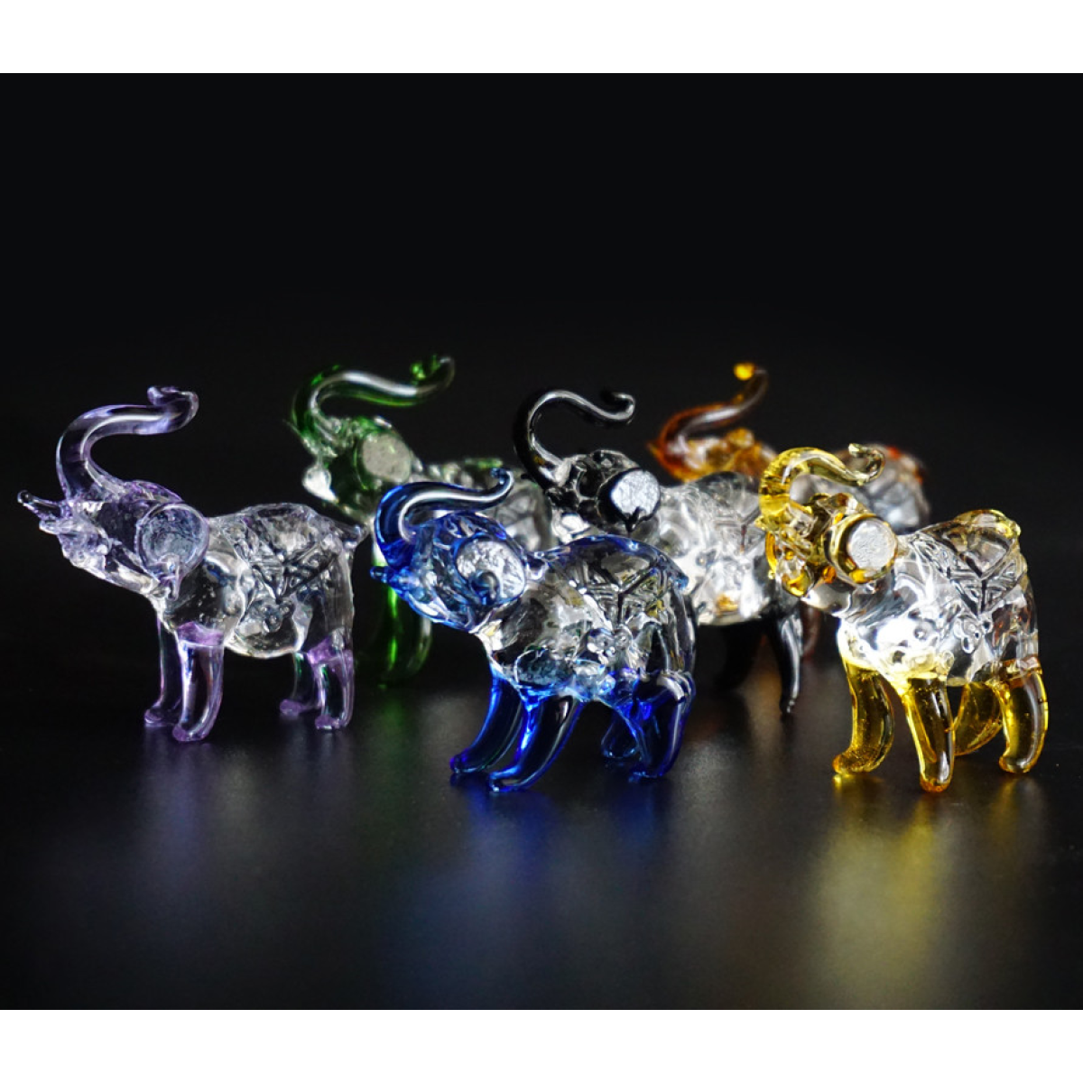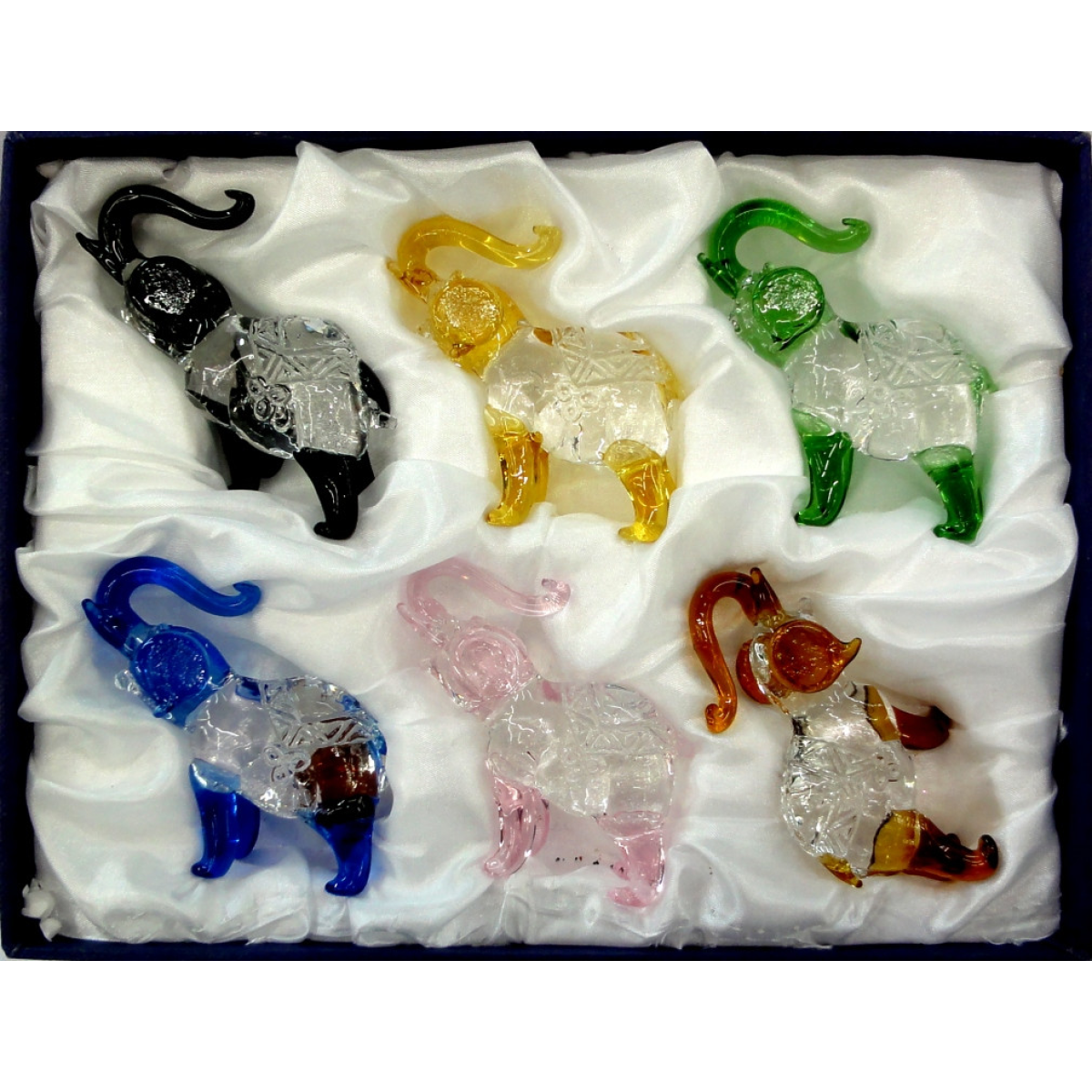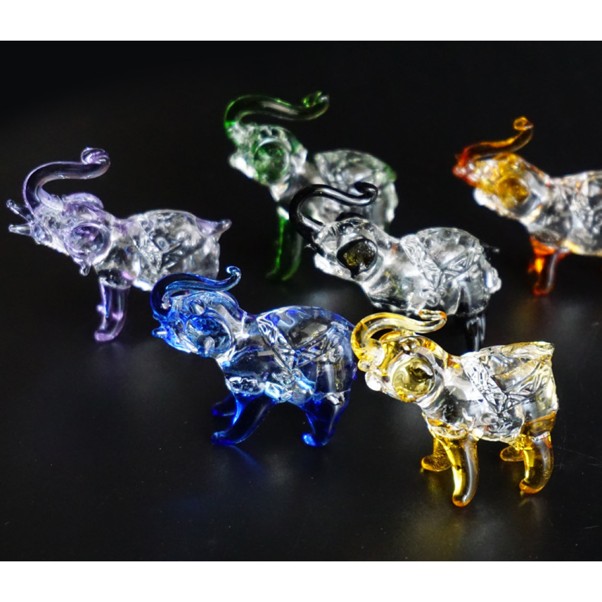 Набір шість слоників кольорове скло