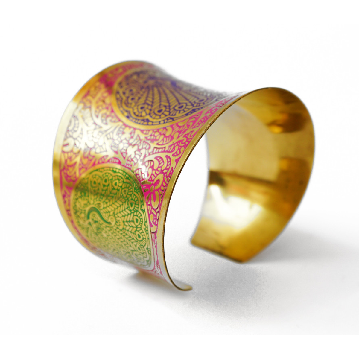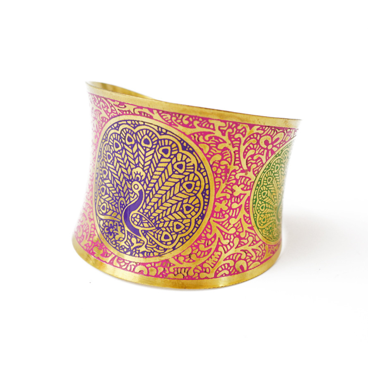 Браслет Скоба кольоровий Павич увігнутий Рожевий