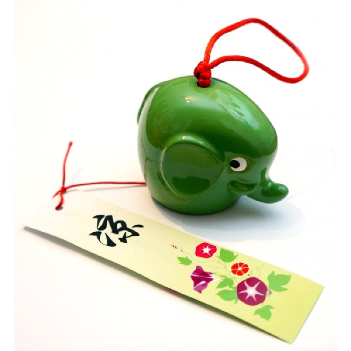 Слоник - керамічний дзвіночок Фурін ЗЕЛЕНИЙ