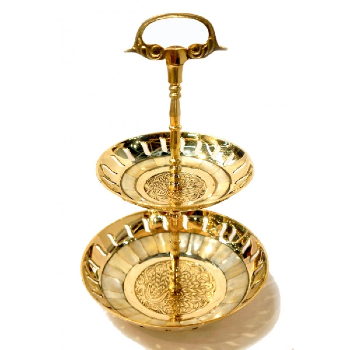 Цукерниця 2 ярусу Shell жовтий метал Арт.19030