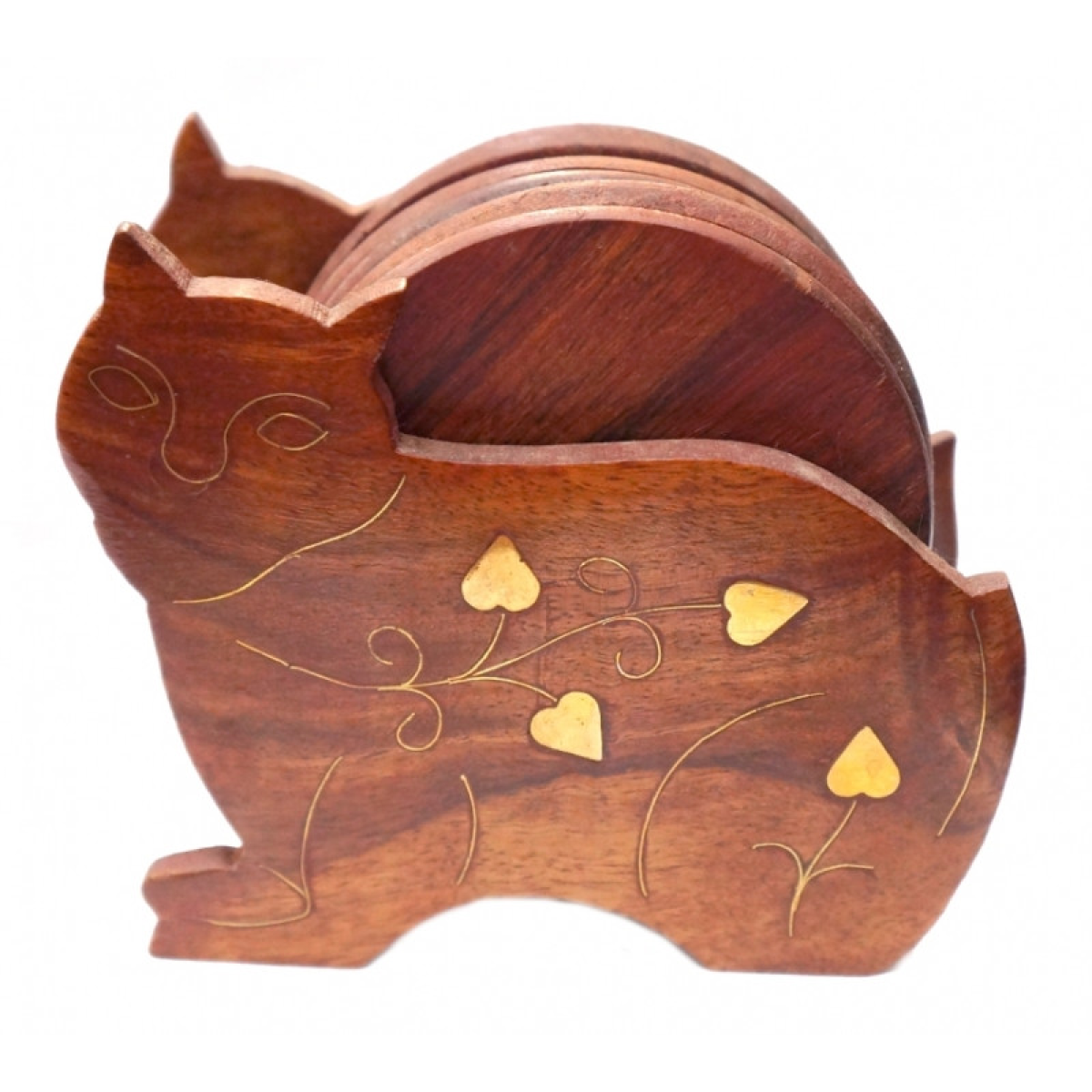 Набір 6 підставок під гаряче з червоного дерева Кіт