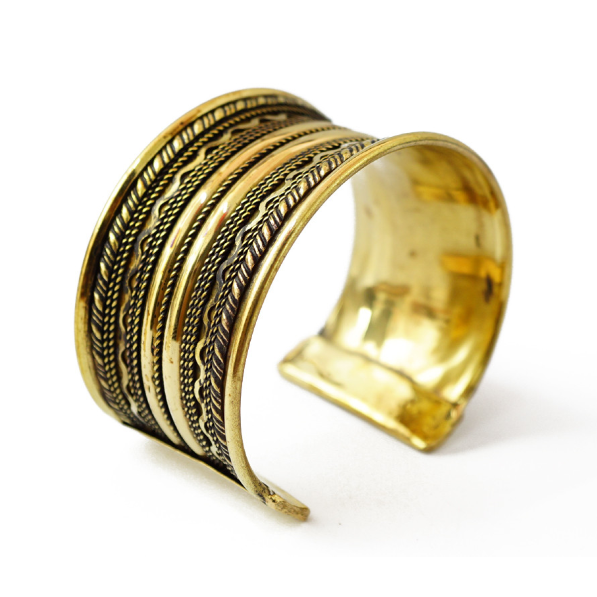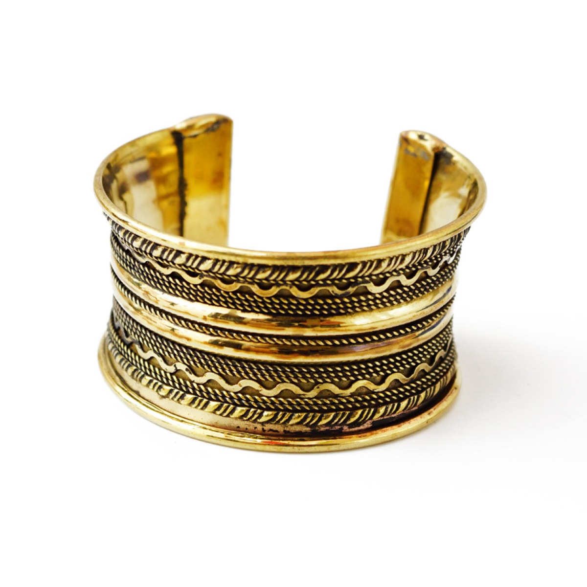Браслет Скоба зиг заг увігнутий жовтий метал