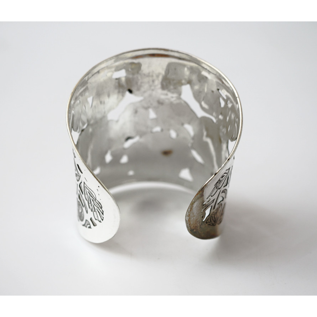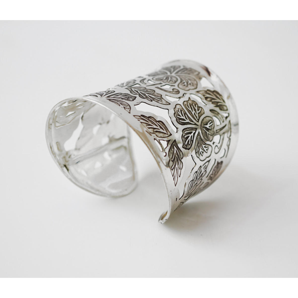 Браслет Скоба Візерунок прорізаний усічений білий метал