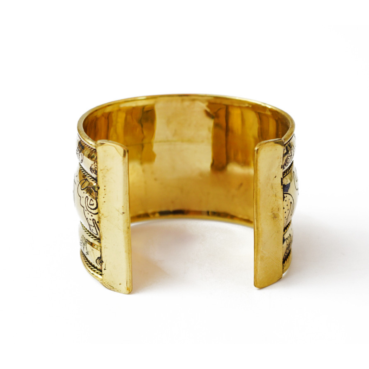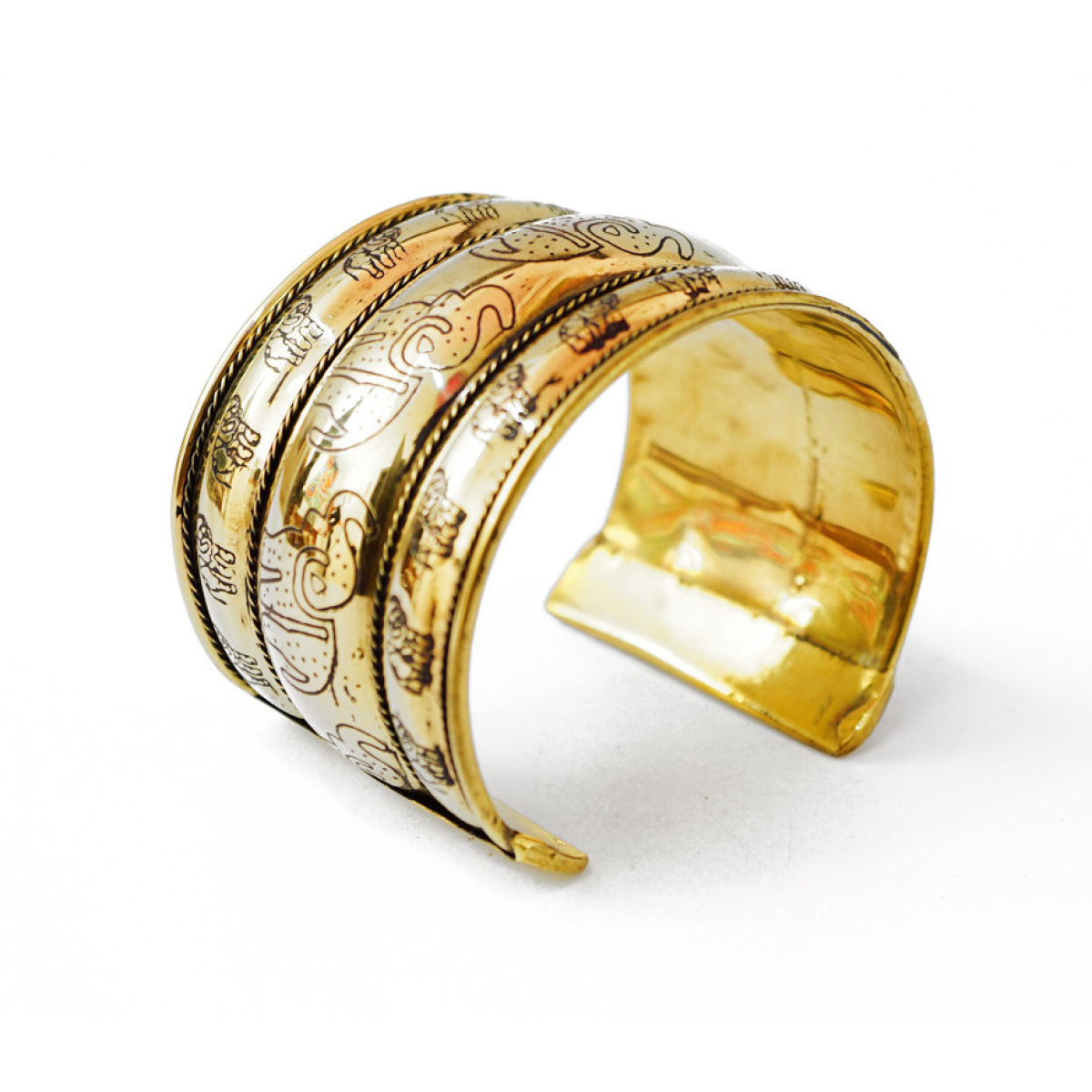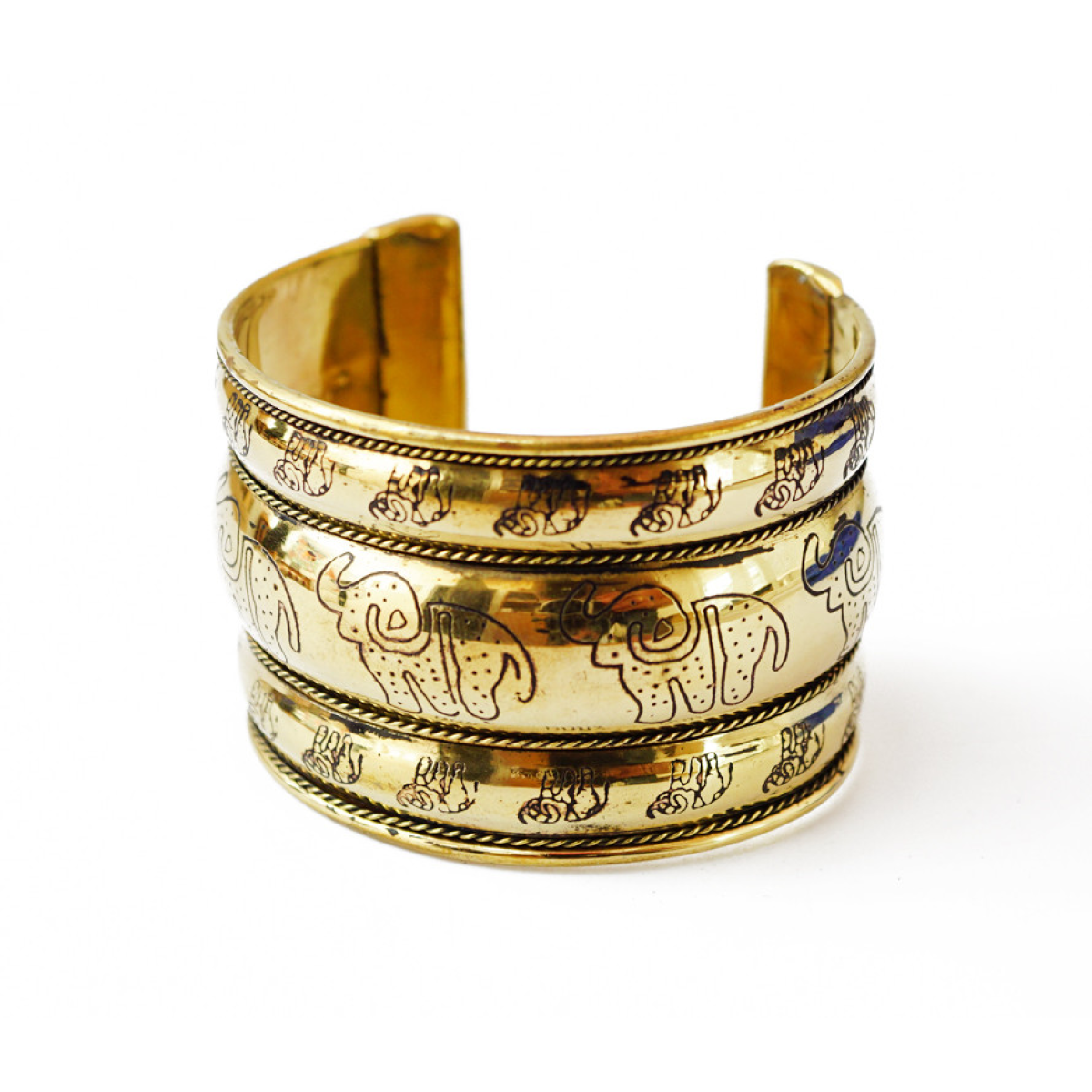 Браслет Скоба Слоніки 3 дуті смужки жовтий метал