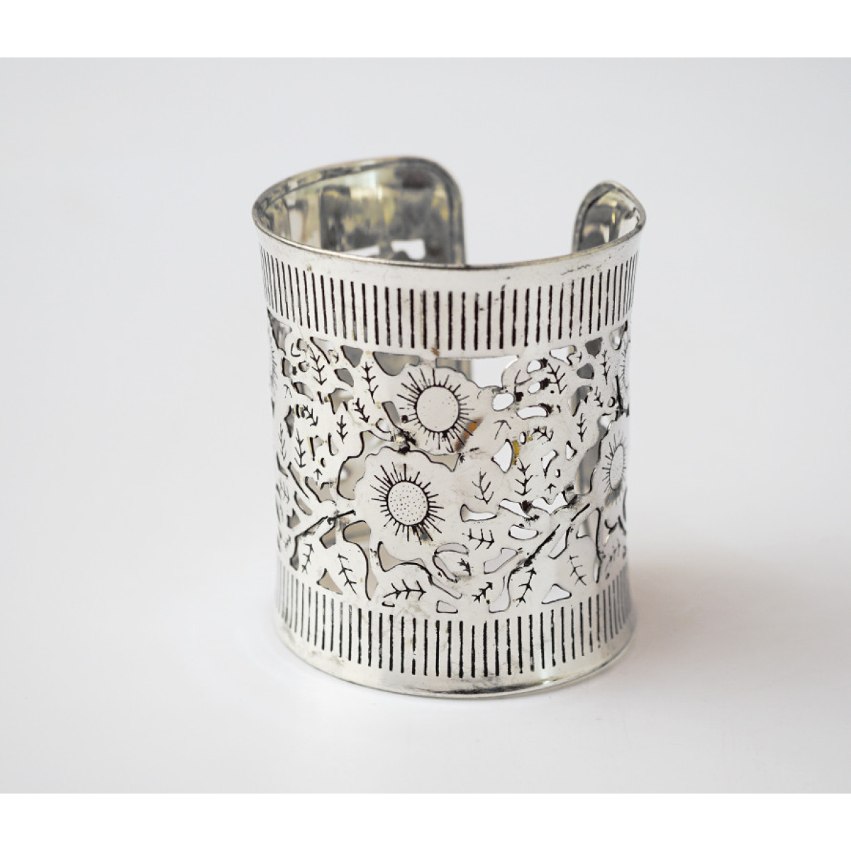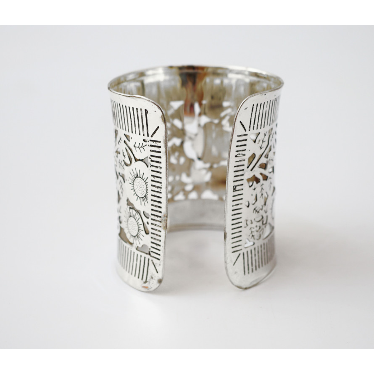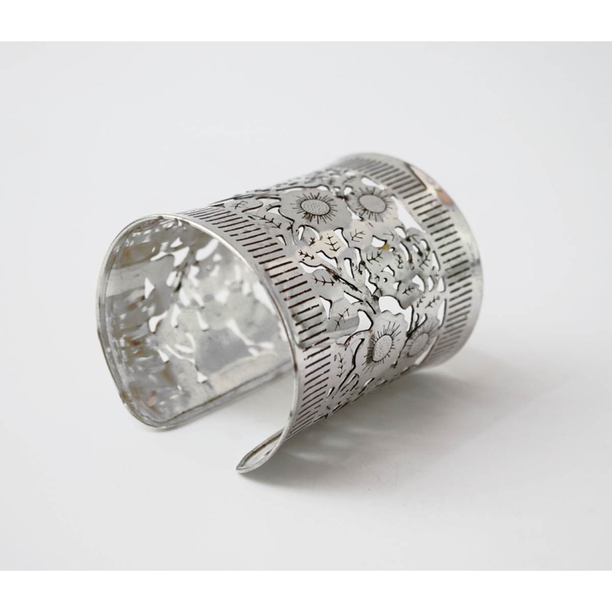 Браслет Скоба Візерунок прорізаний білий метал