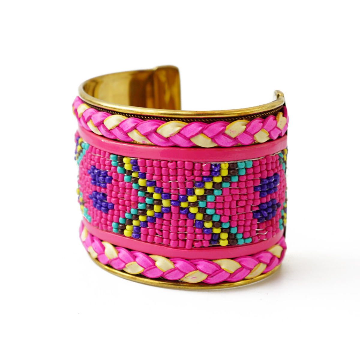 Браслет Скоба Біссер + Шкіра №2
