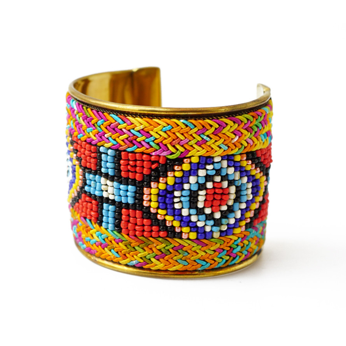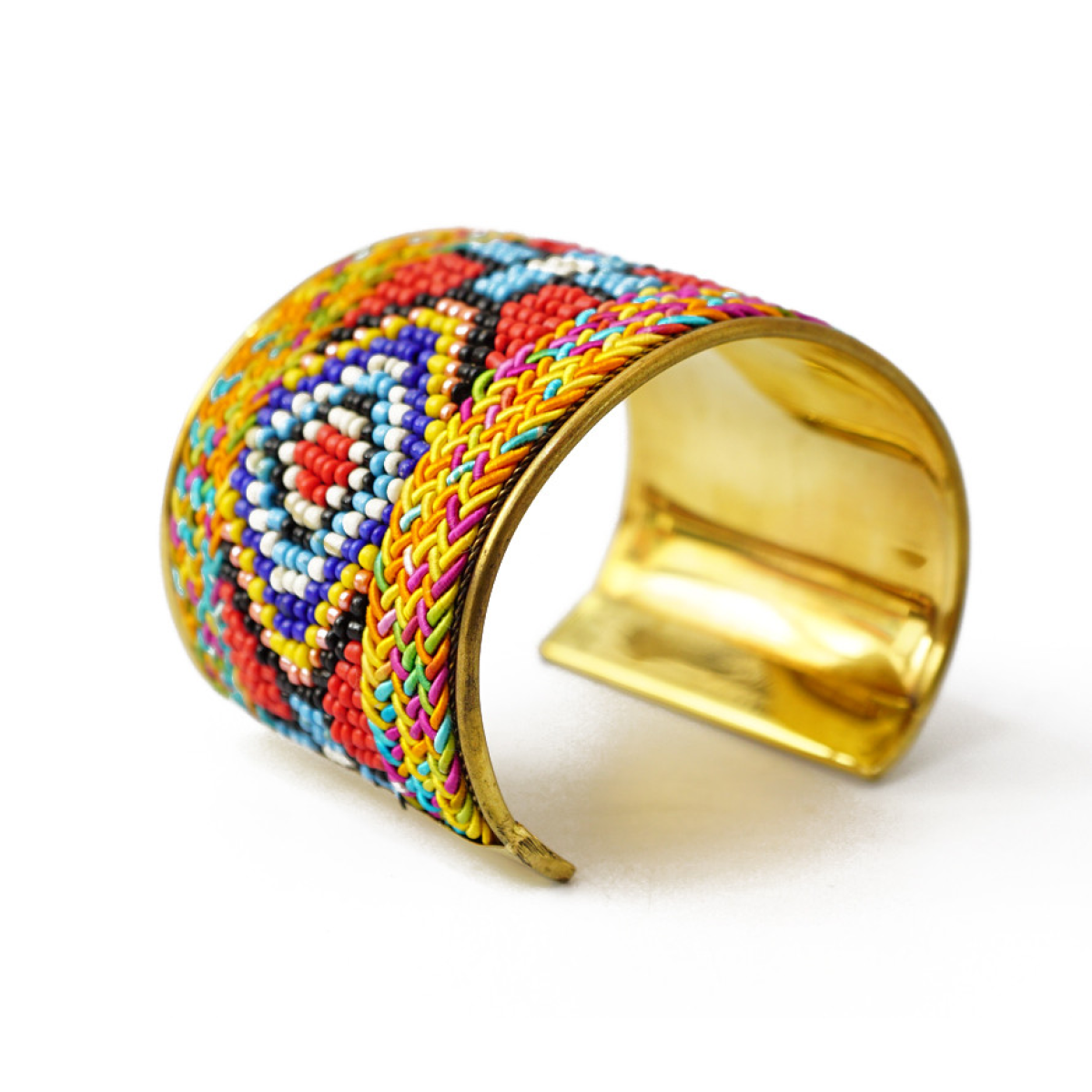 Браслет Скоба Біссер + Шкіра №4