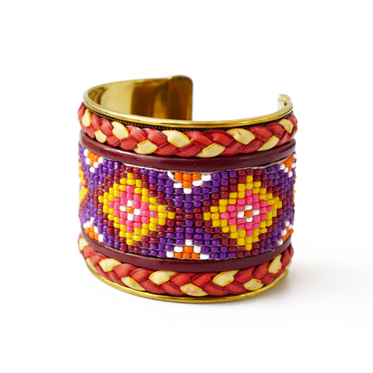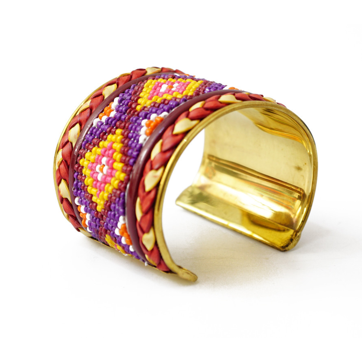 Браслет Скоба Біссер + Шкіра №13