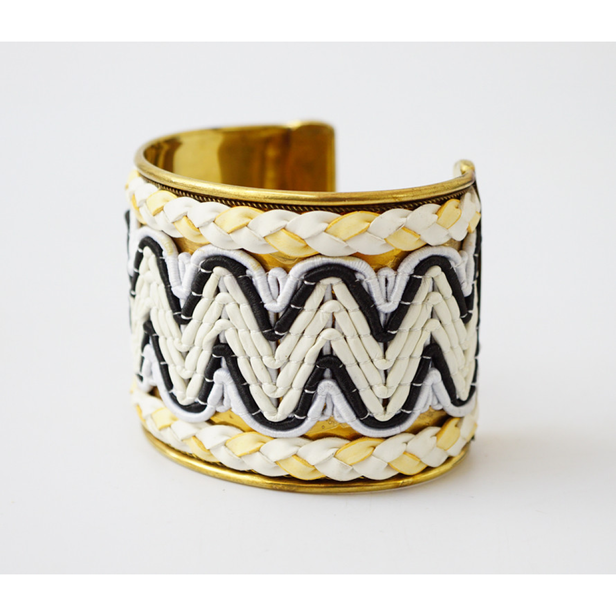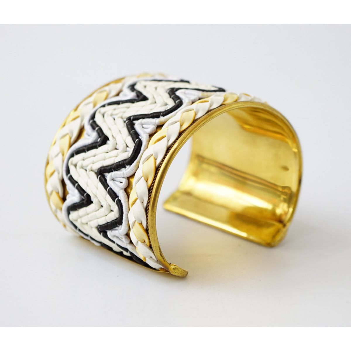 Браслет Скоба Біссер + Шкіра №19