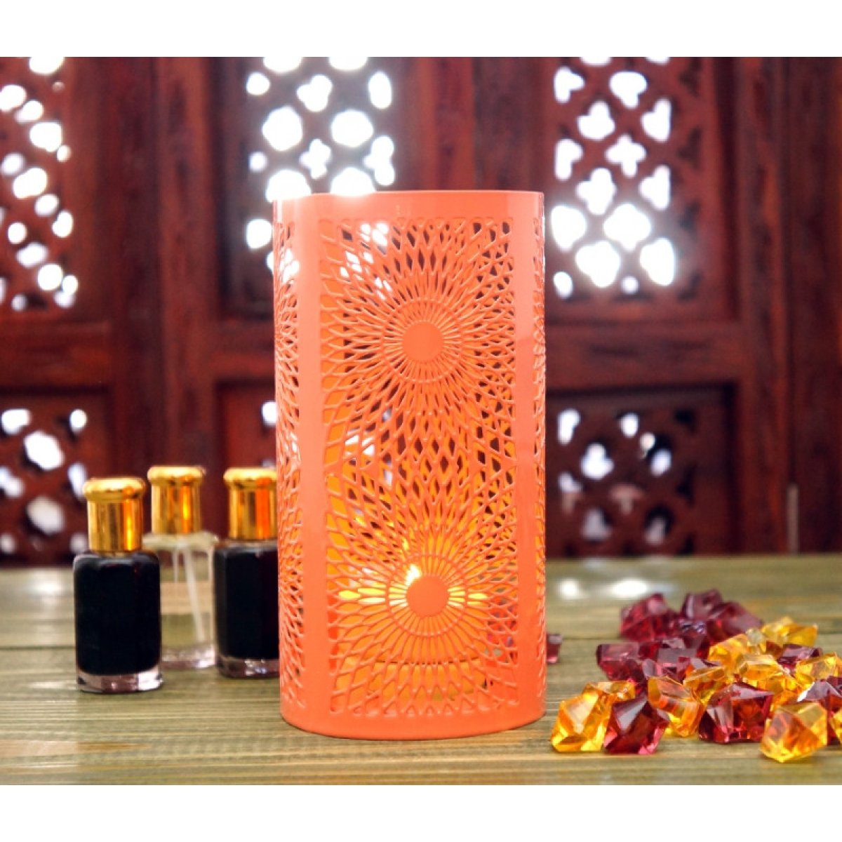 • Свічник металевий з емаллю Персиковий