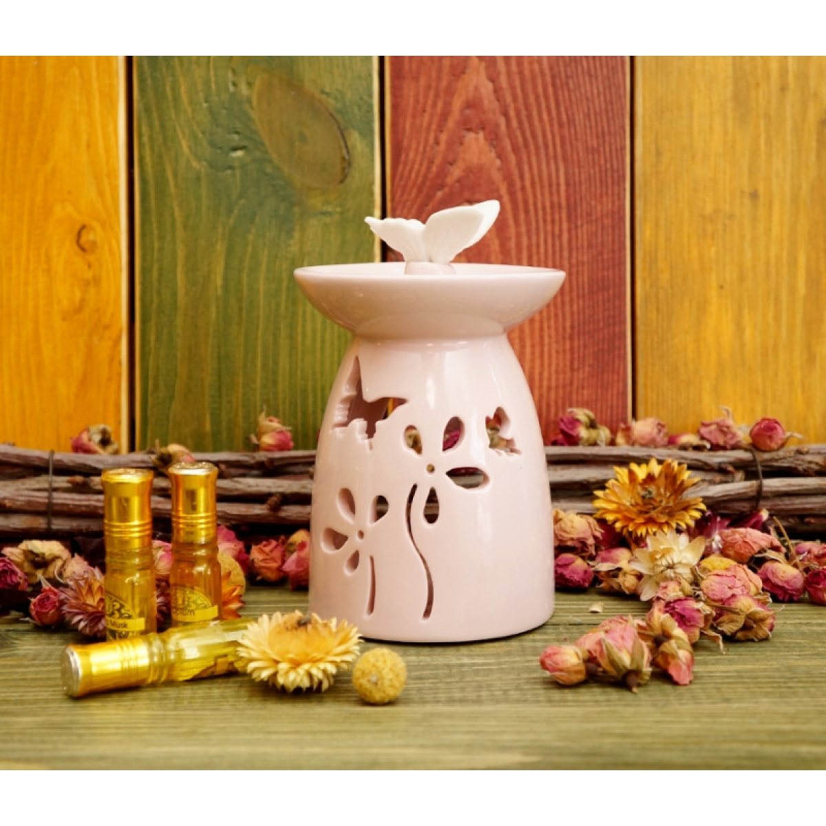 Аромалампа керамічна Метелик у квітах Рожева