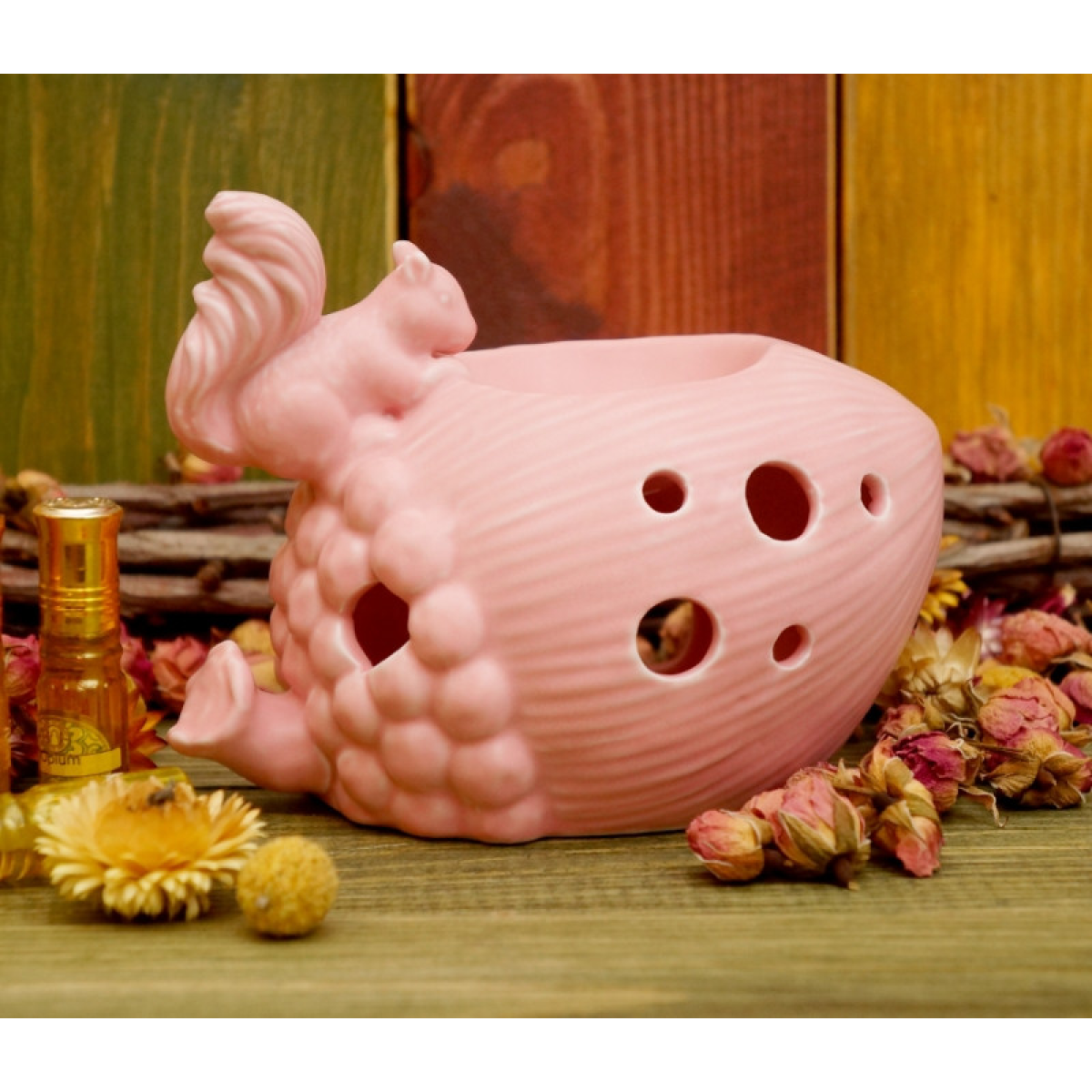 Аромалампа керамічна Білка на жолуді Рожева