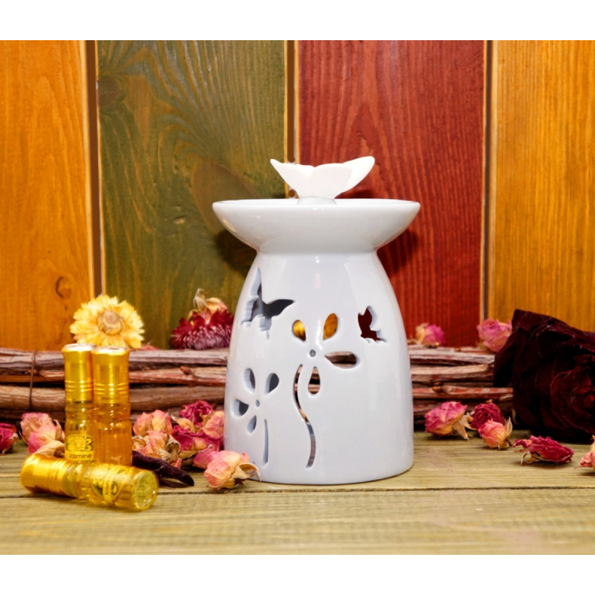 Аромалампа керамічна Метелик у квітах Блакитна №2