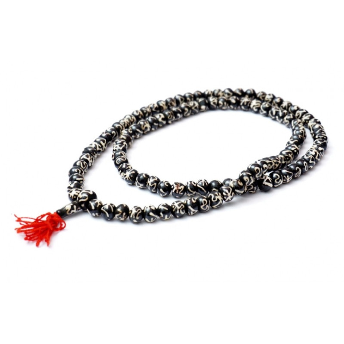 Чітки з кістки ОМ санскрит чорні + білий малюнок 10мм.