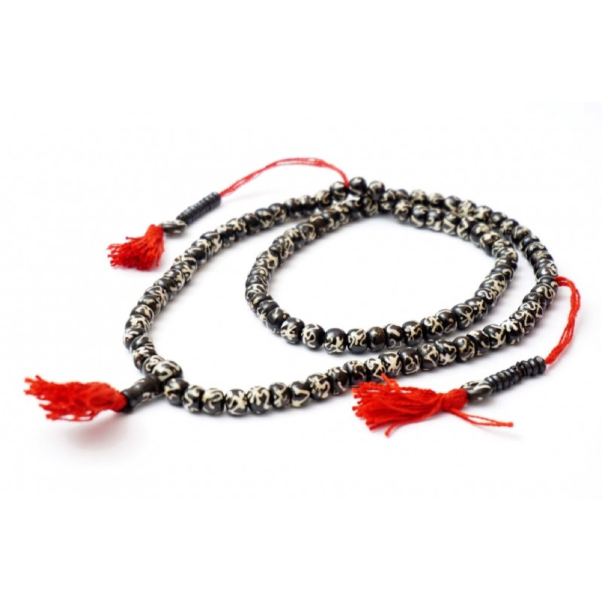 Чітки з кістки ОМ санскрит чорні + білий малюнок 8мм.