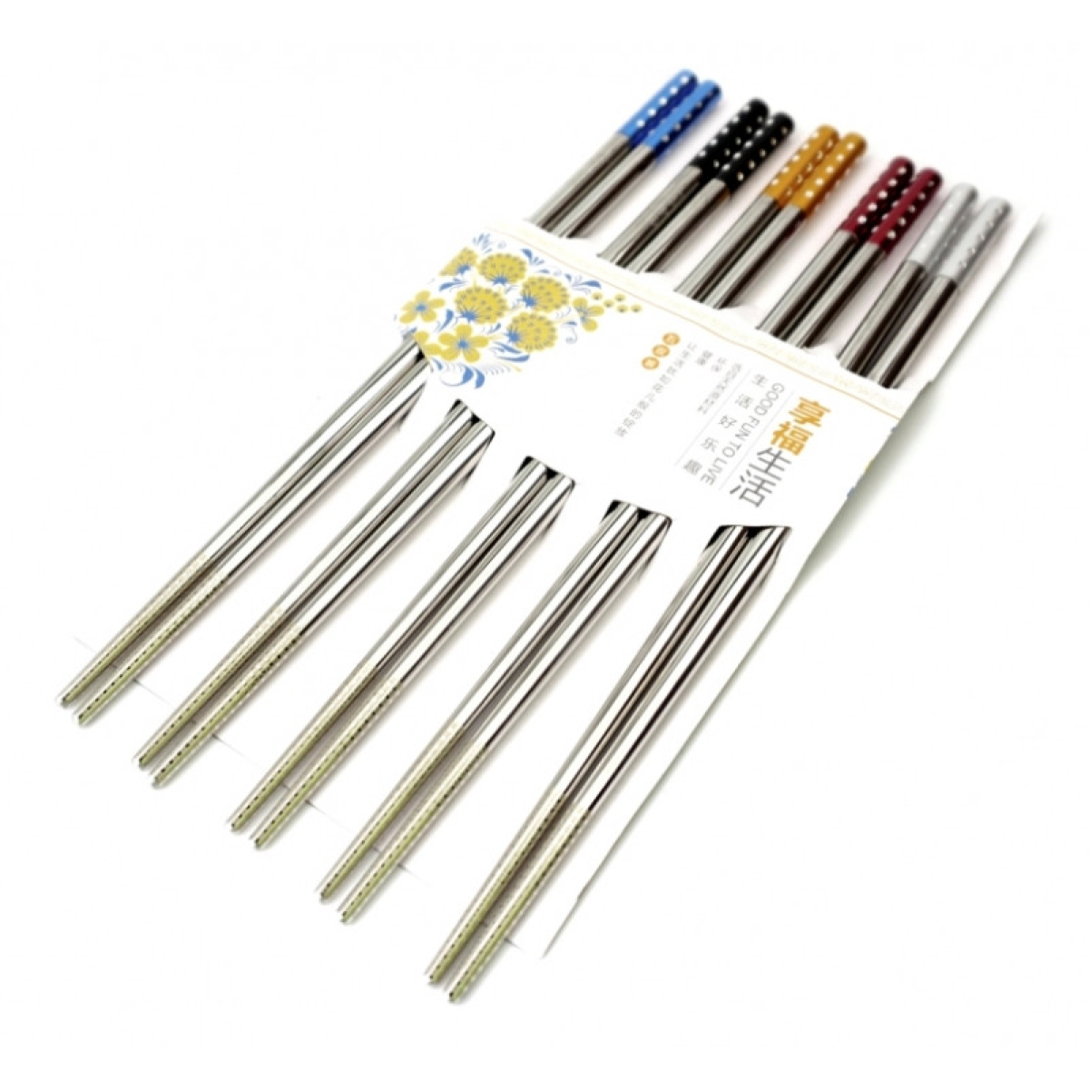 Палички для їжі сталеві кольорові в блістері набір 5 пар