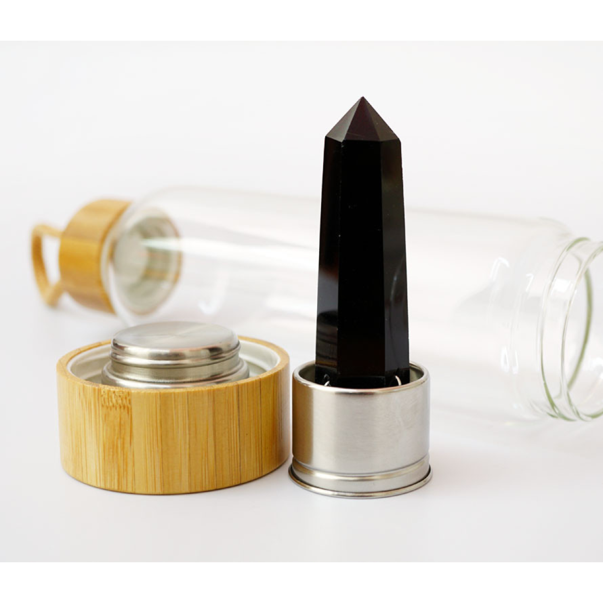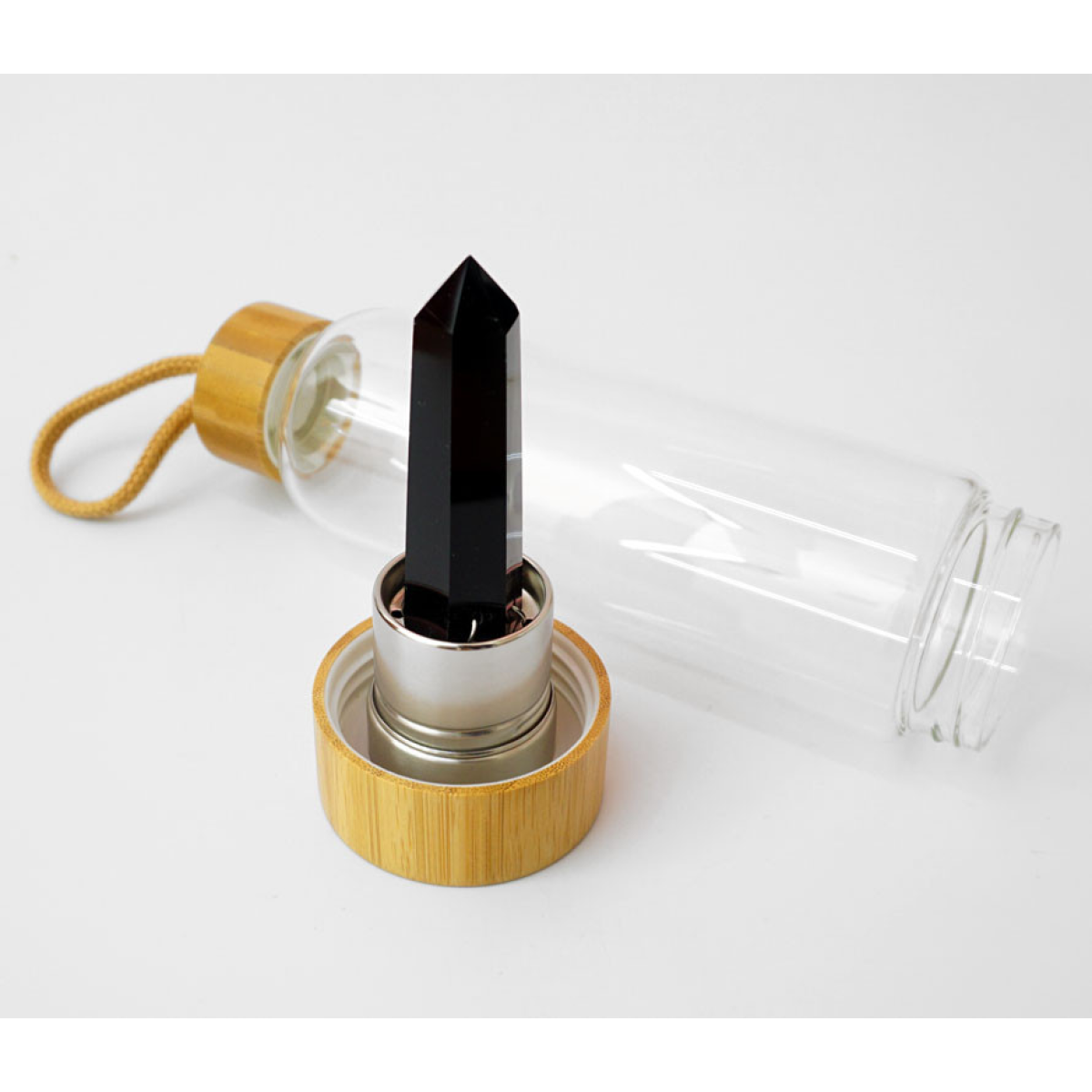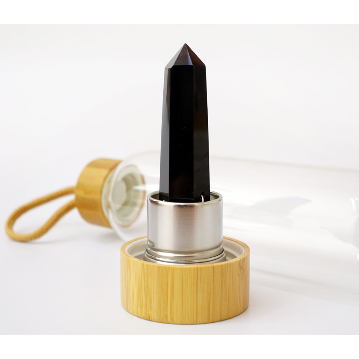 Пляшка для води із кристалом 550мл. Чорний обсидіан