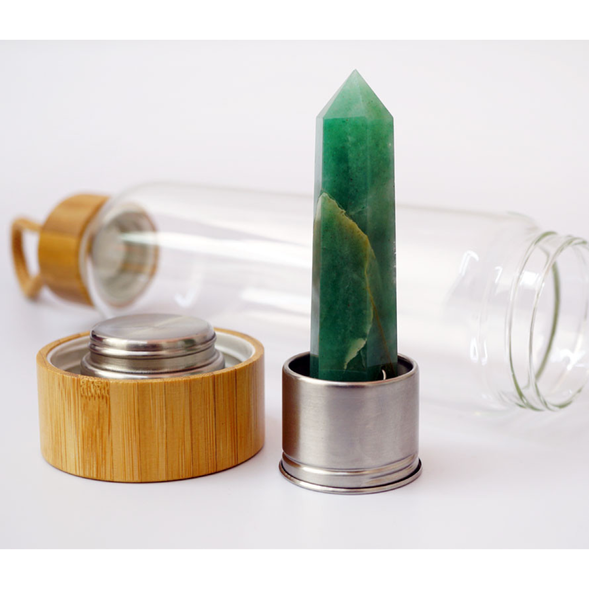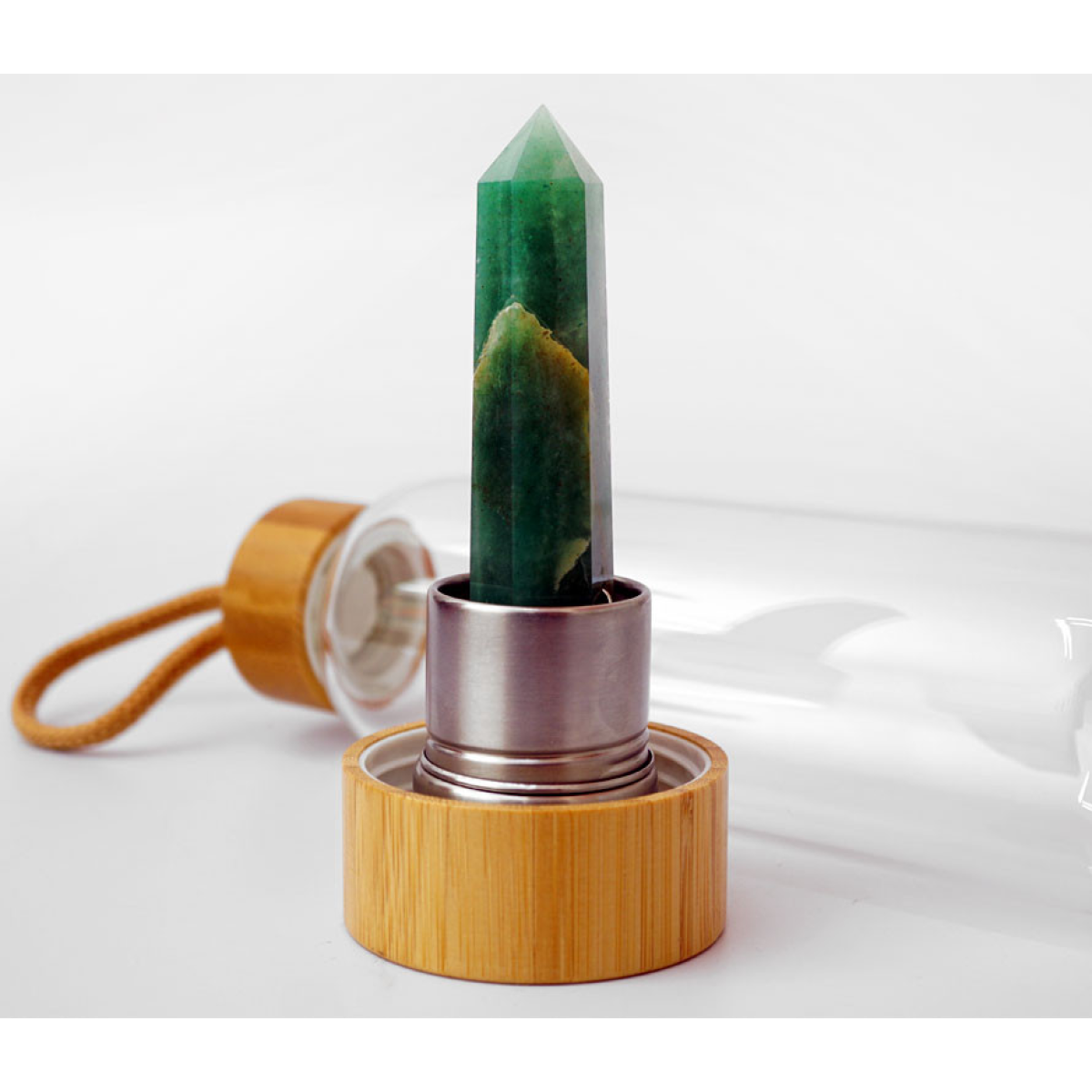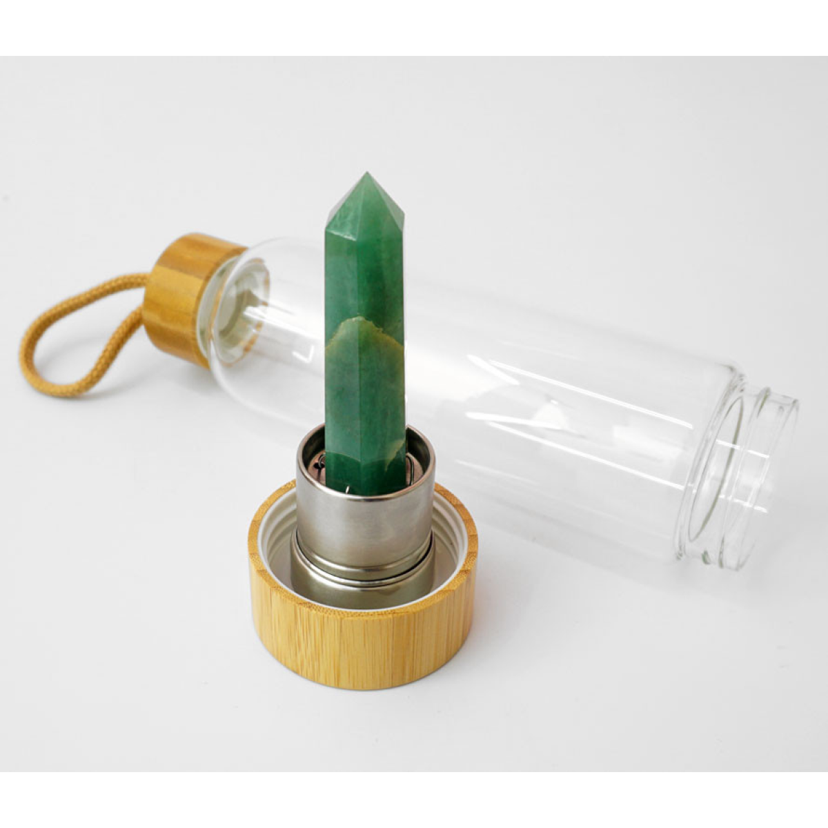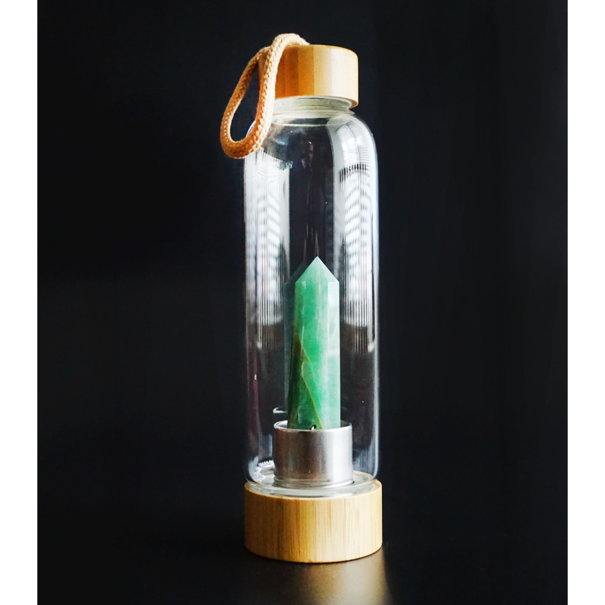 Пляшка для води із кристалом 550мл. Зелений авантюрин