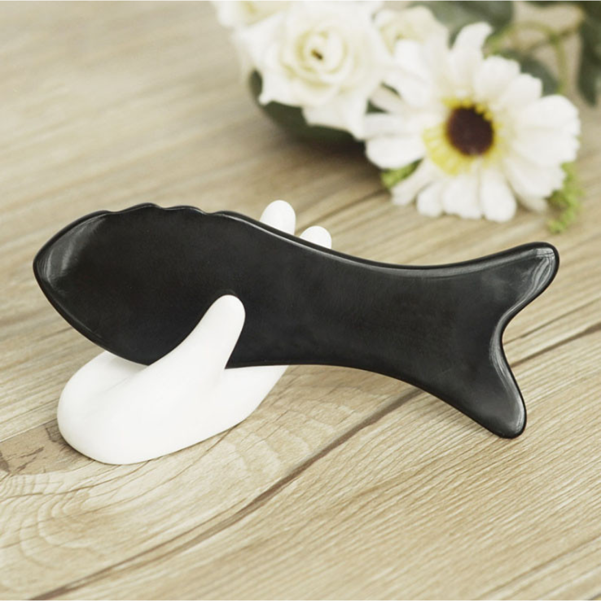 Масажер з рогу Гуа Ша Риба із зубами чорний Арт.254
