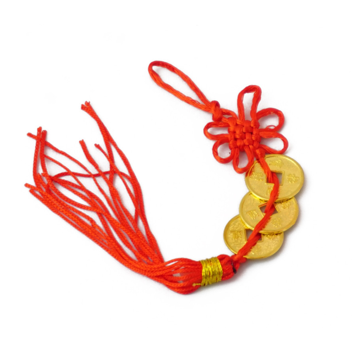 Підвіска з пензликом три монети в лінію у золотому кольорі