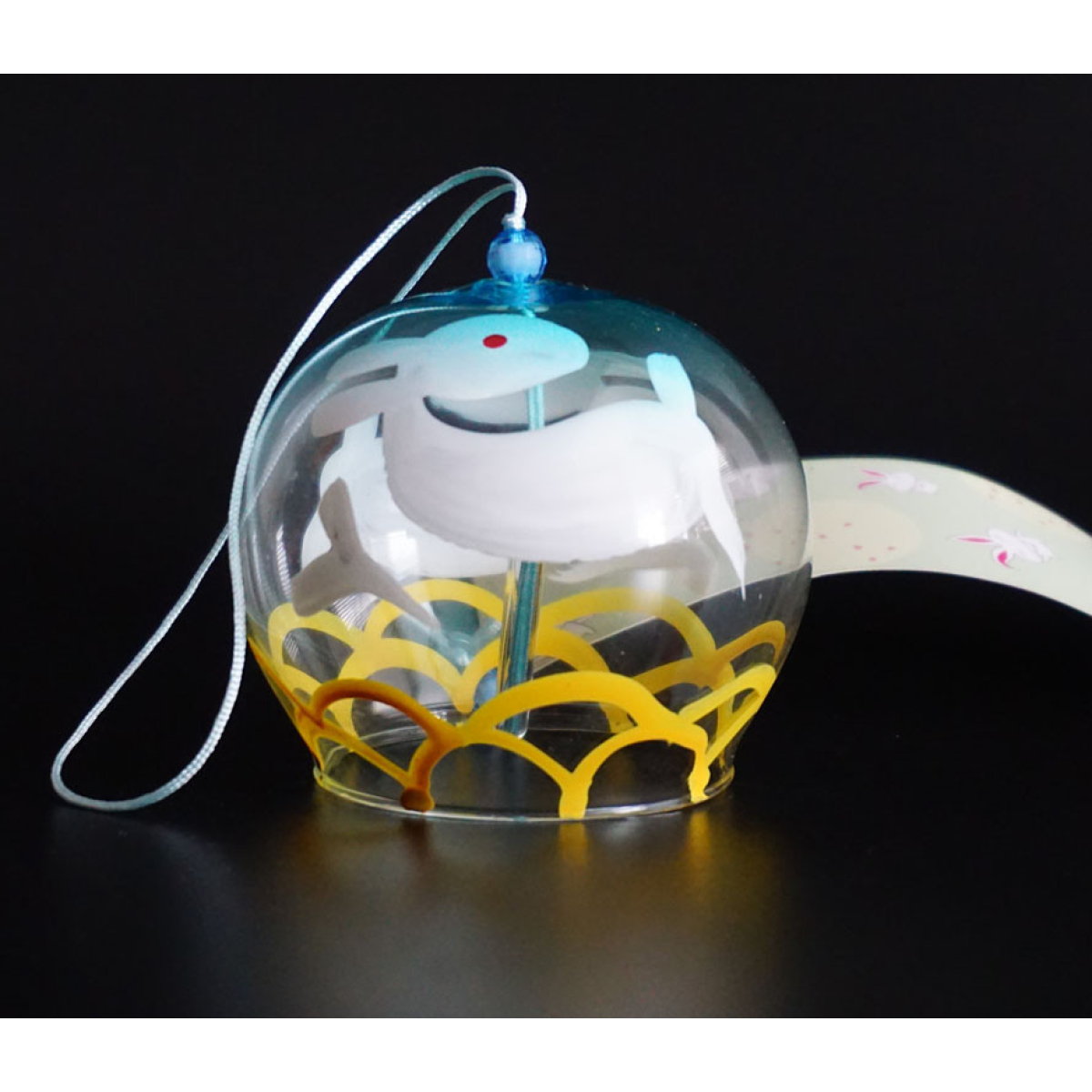 Японський скляний дзвіночок Фурін Два сніжні зайці