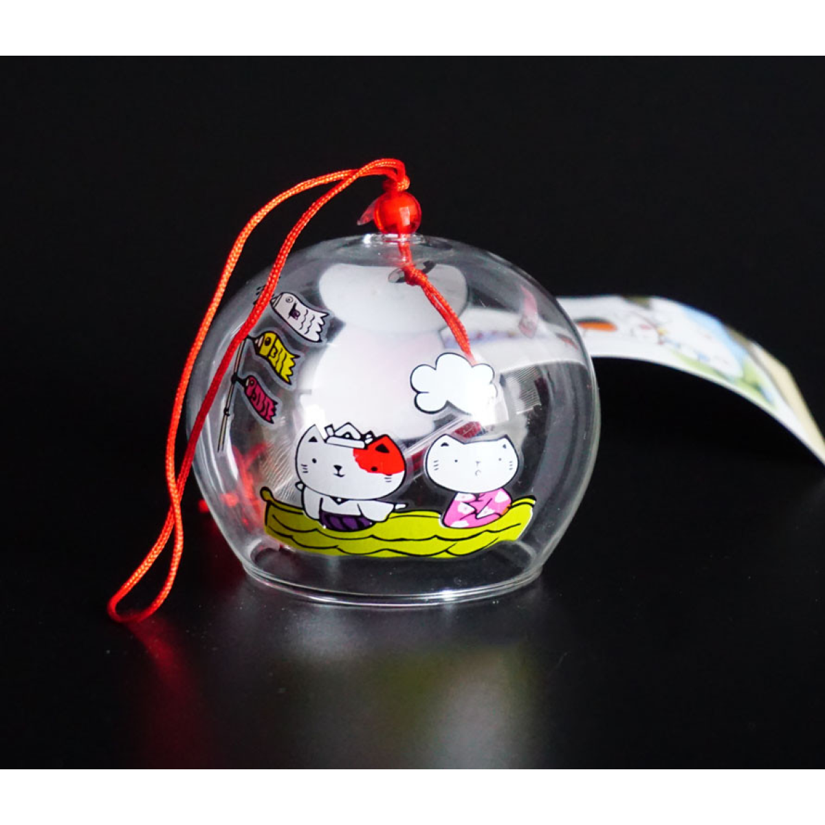 Японський скляний дзвіночок Фурін малий Сім“я котів