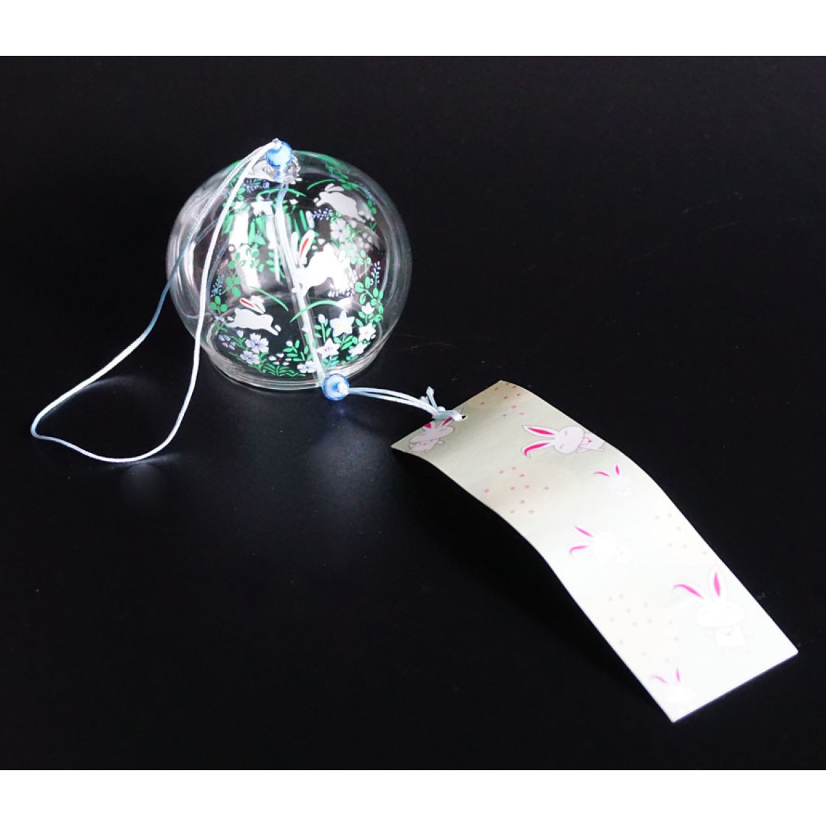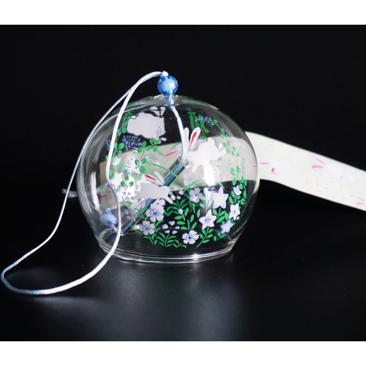 Японський скляний дзвіночок Фурін малий Зайці в квітах