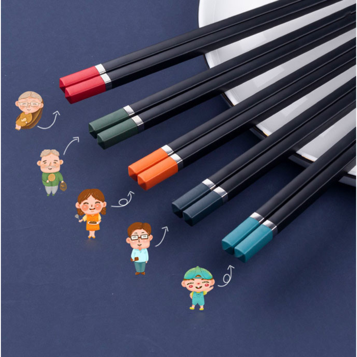 Палички для їжі KangJu набір 5 пар Кольорова ручка Пластик