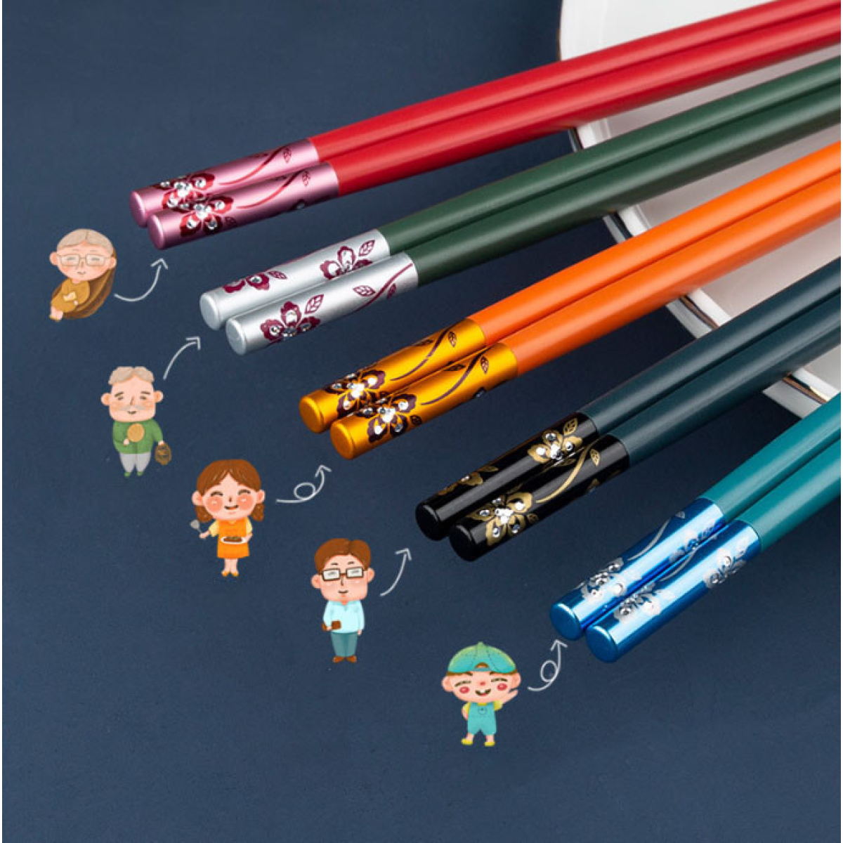 Палички для їжі KangJu набір 5 пар Кольорові квіти Пластик