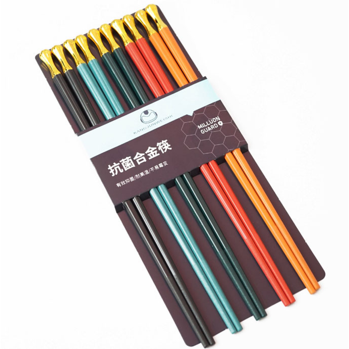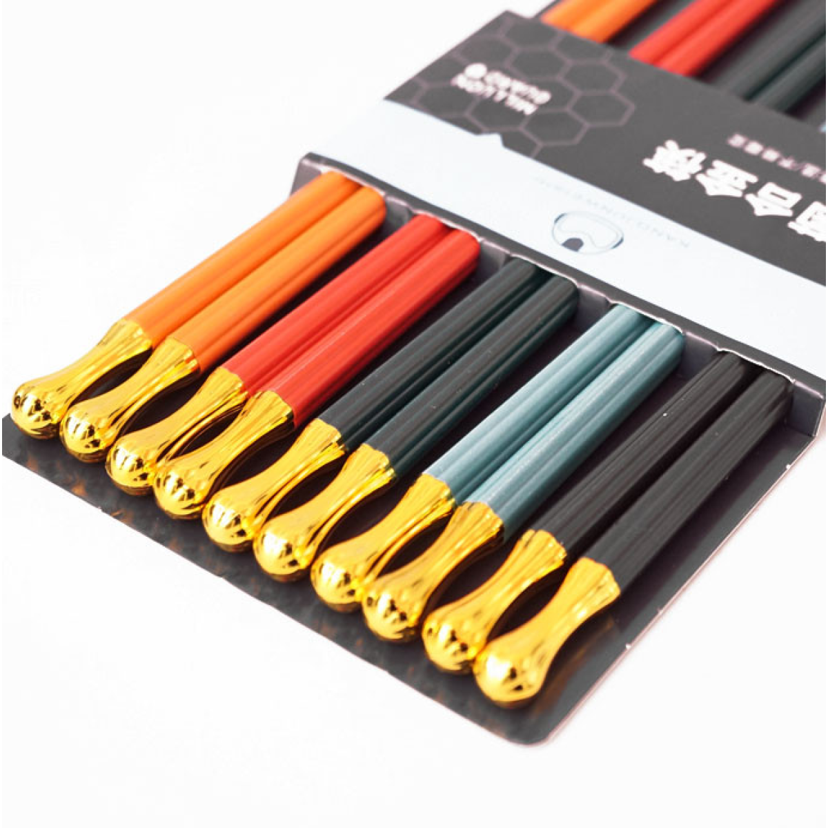 Палички для їжі KangJu набір 5 пар Кольорові із золотом Пластик