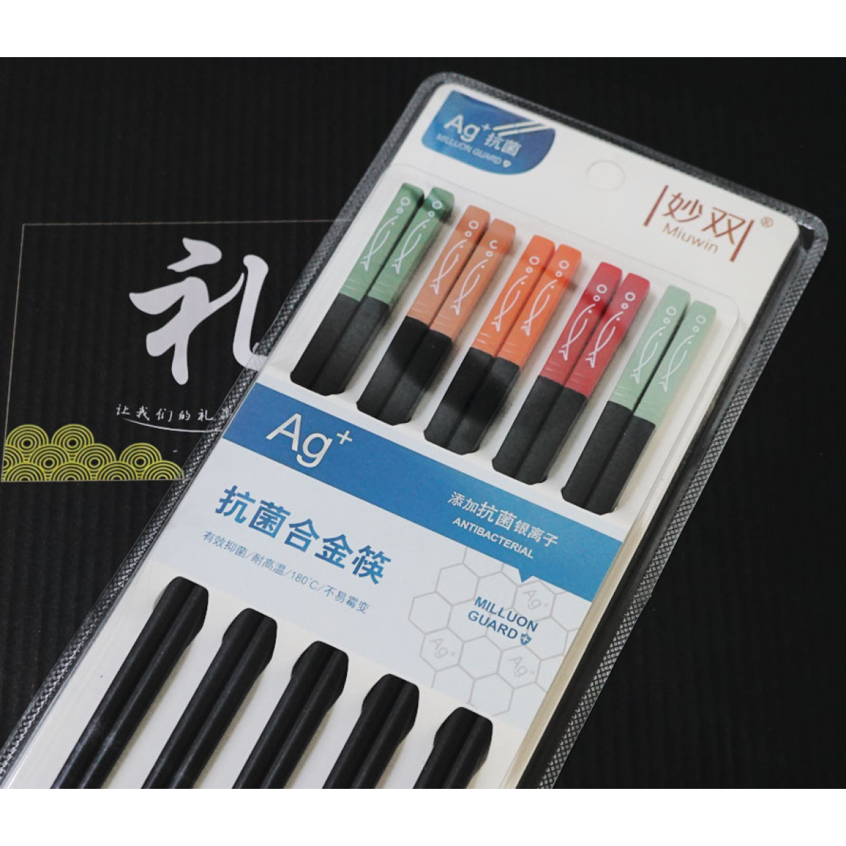 Палички для їжі 5 пар 24см. Рибки п“ятикольорові
