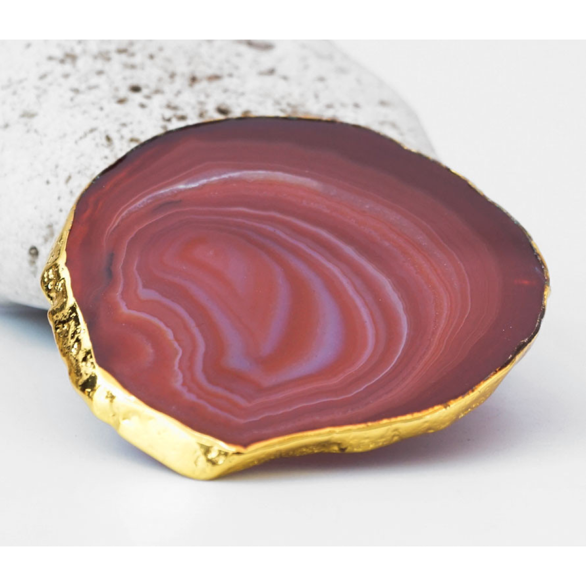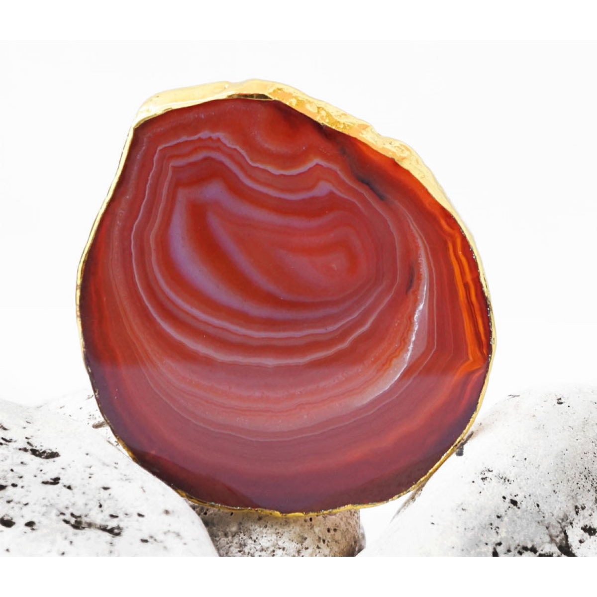 Зріз агата із золотою облямівкою 8 - 10 см. Червоний