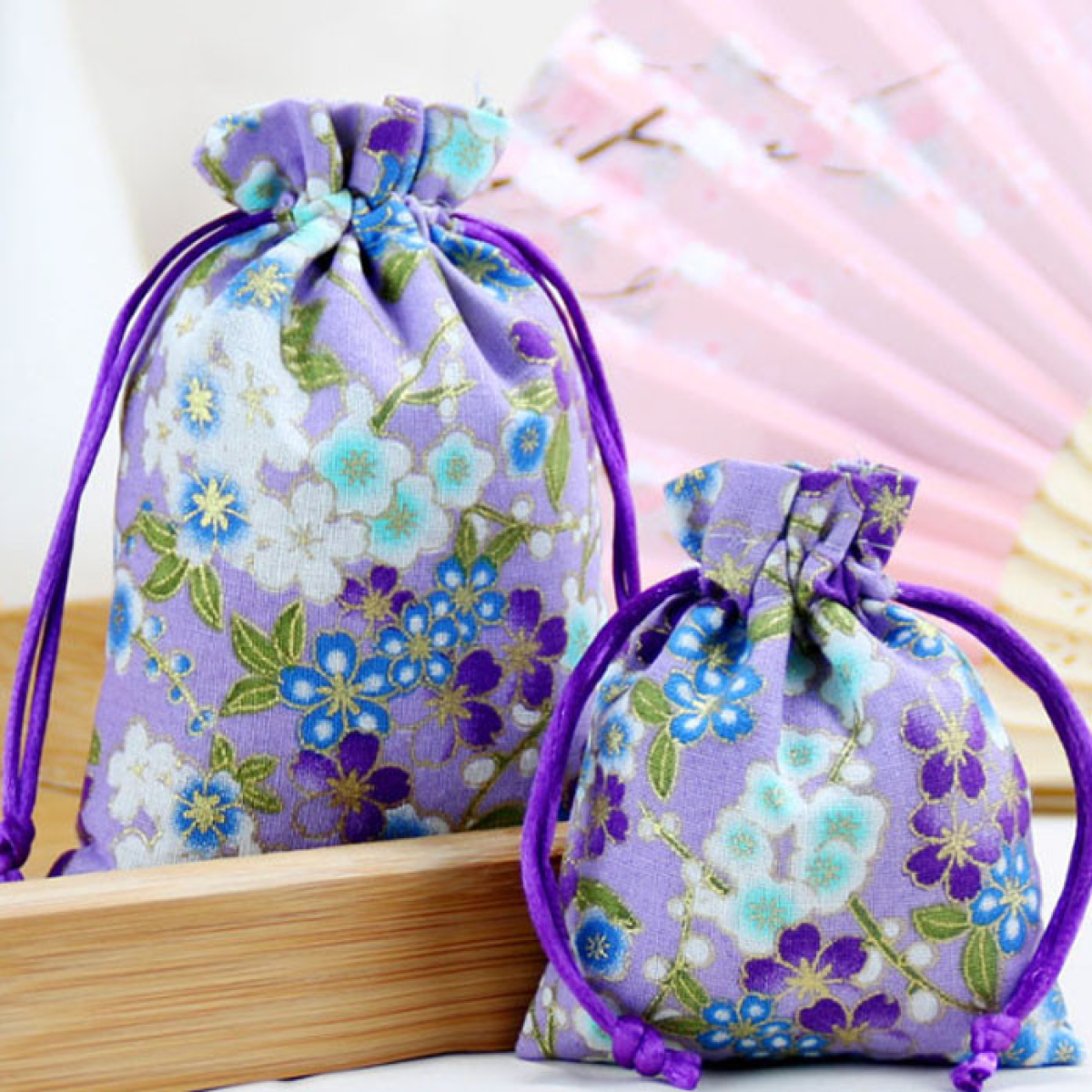 Мішечок х\б Квіти вишні Бузковий