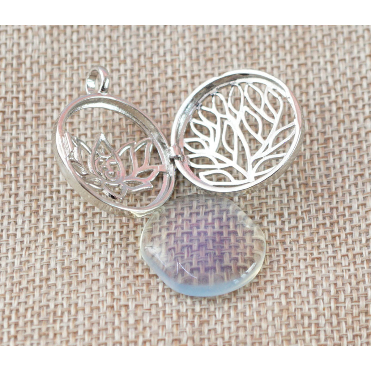 Кулон що відкривається, ОМ в лотосі, вставка Флюорит