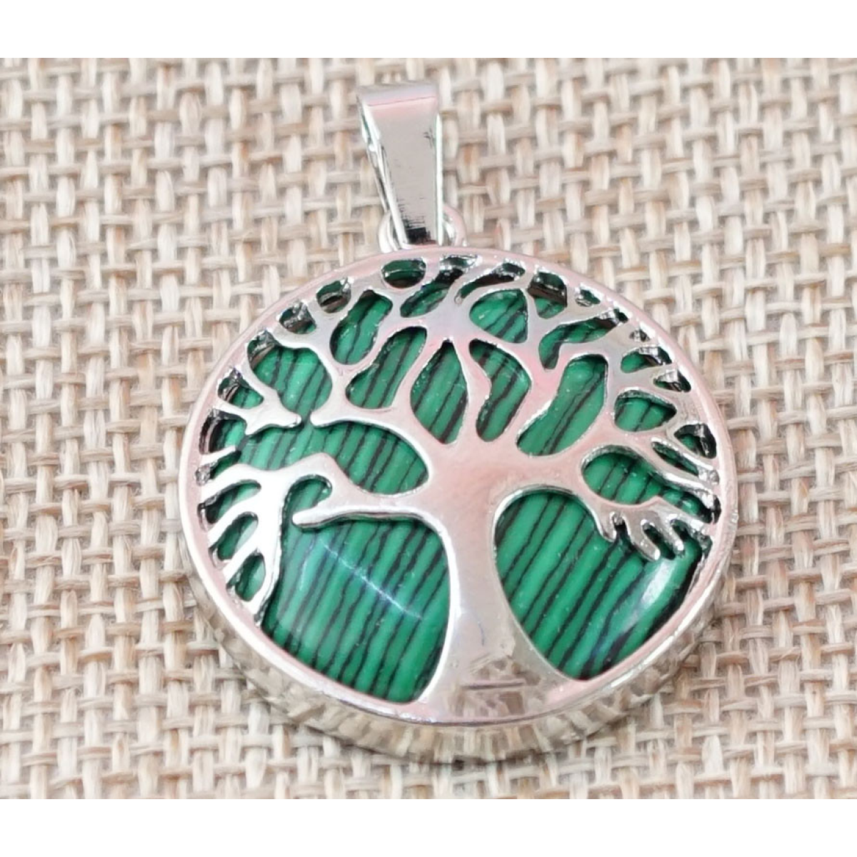 Кулон білий метал Дерево Життя Малахіт полімерний