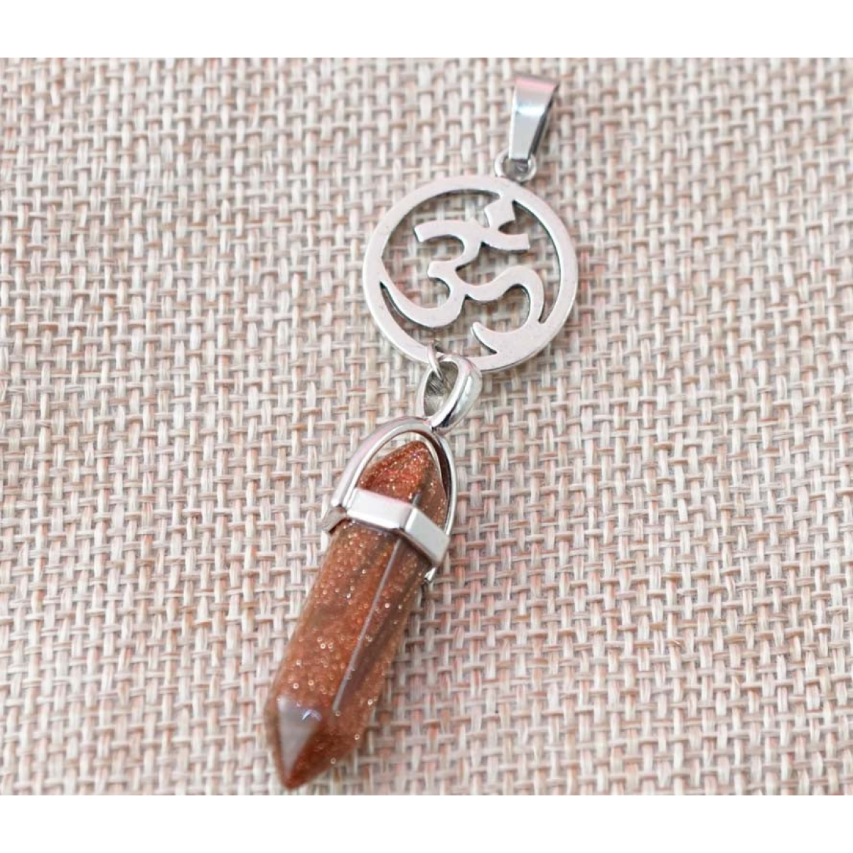 Кулон білий метал ОМ у колі вставка Червоний авантюрин
