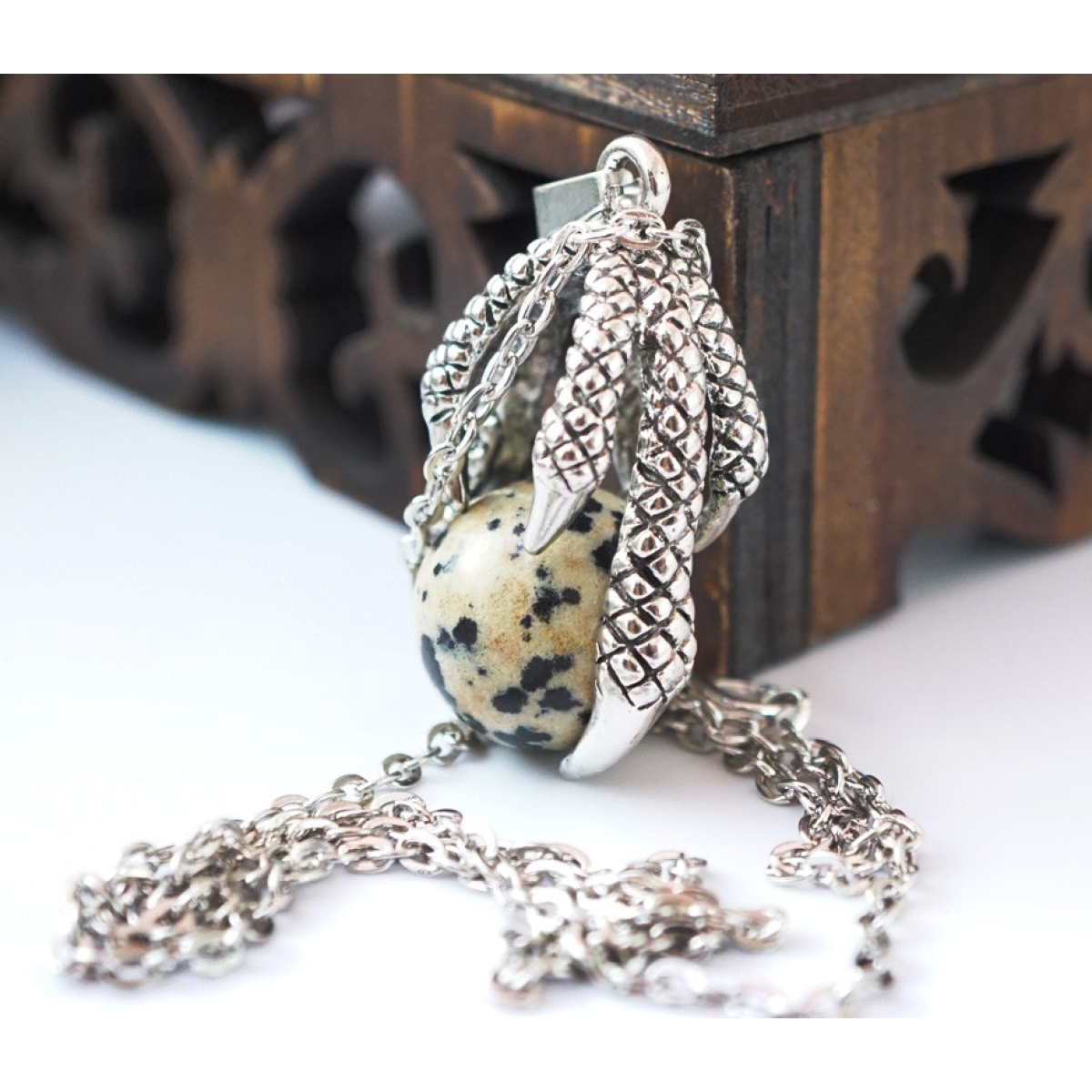 Кулон з ланцюжком Кігті вставка Долматинова яшма