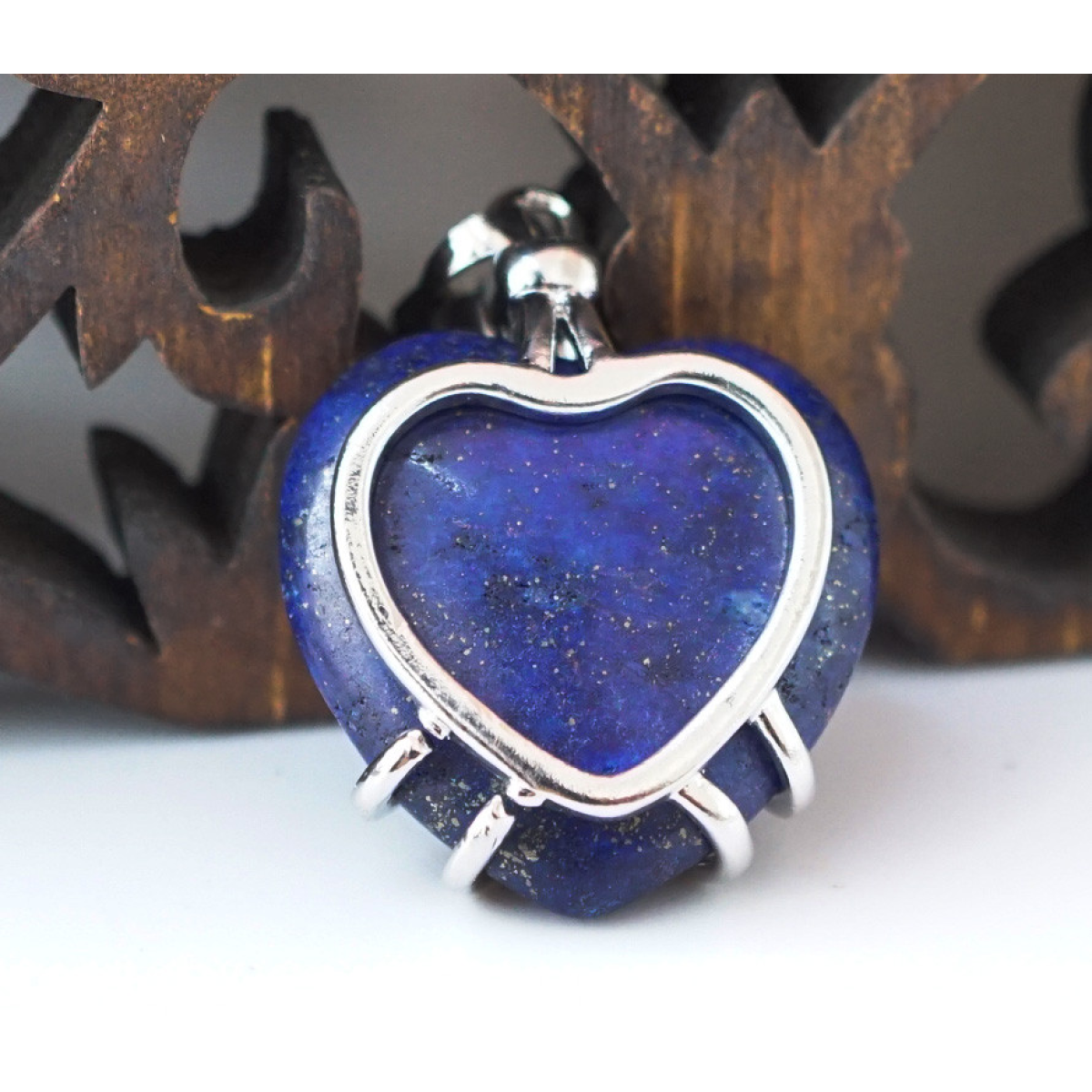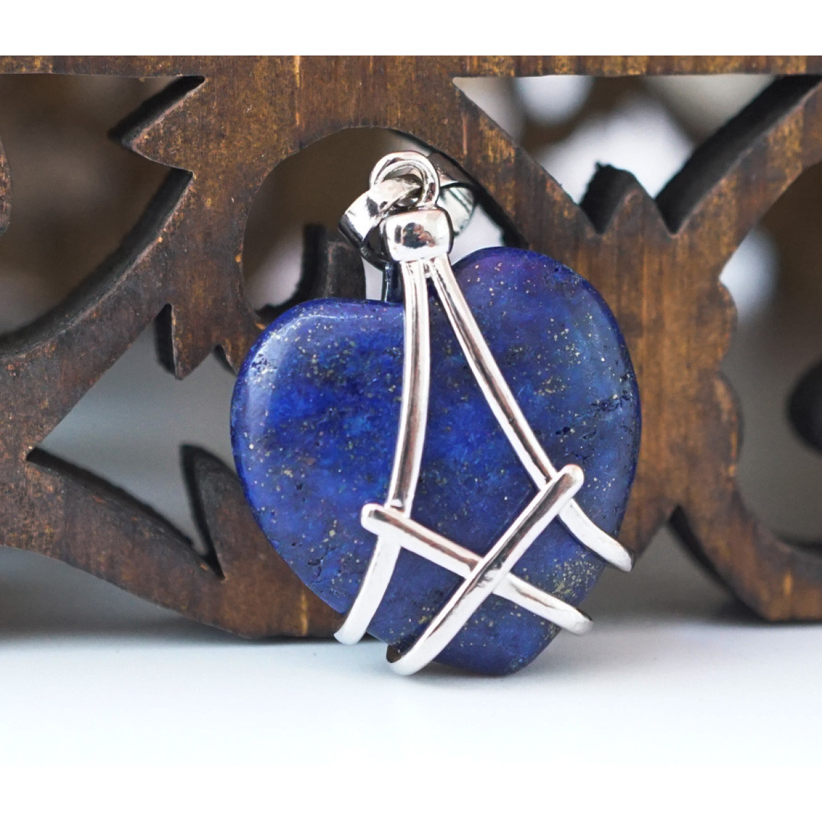 Кулон Серце в сітці вставка Лазуріт