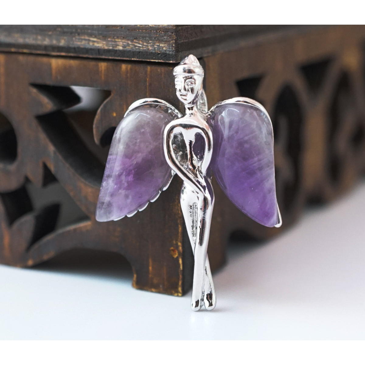 Кулон Ангел з кам“яними крилами вставка Аметист