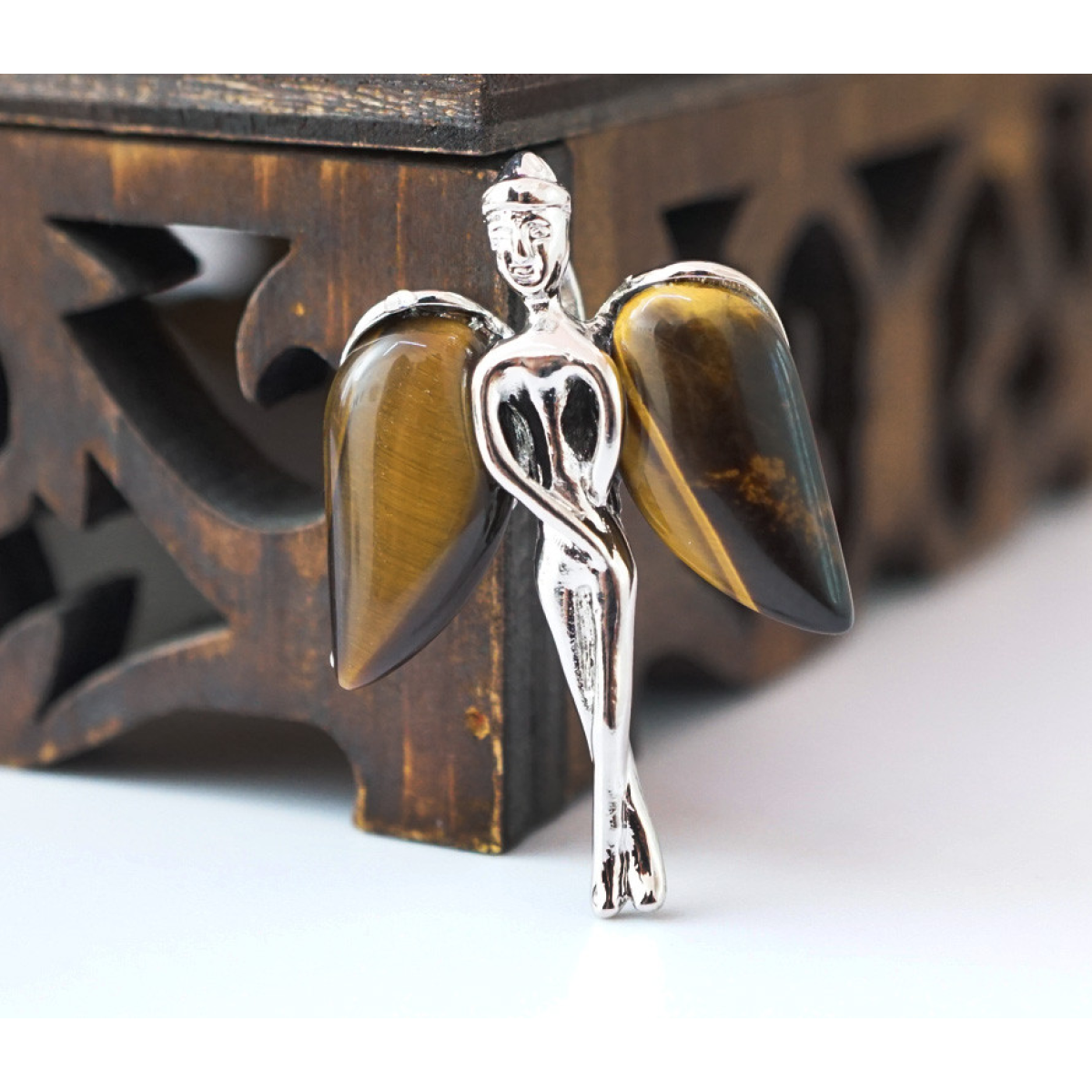 Кулон Ангел з кам“яними крилами вставка Тигрове око