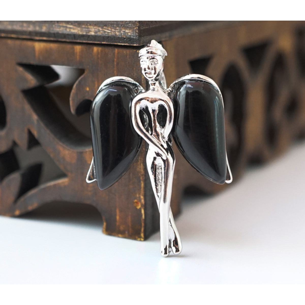 Кулон Ангел з кам“яними крилами вставка Чорний обсидіан