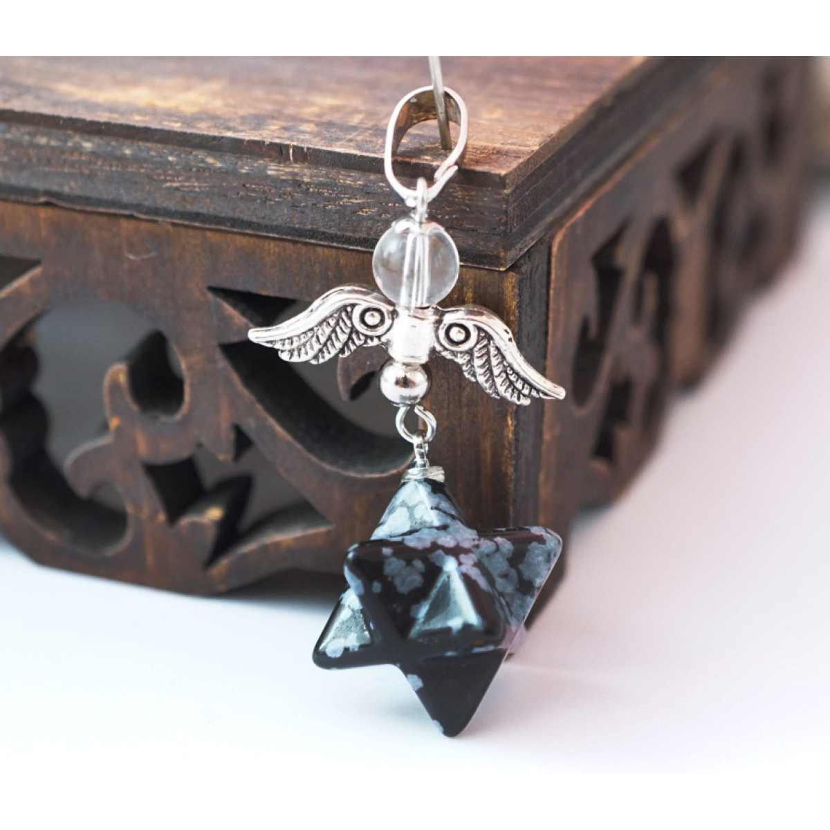 Кулон Кадуцей з меркабою Сніговий обсидіан