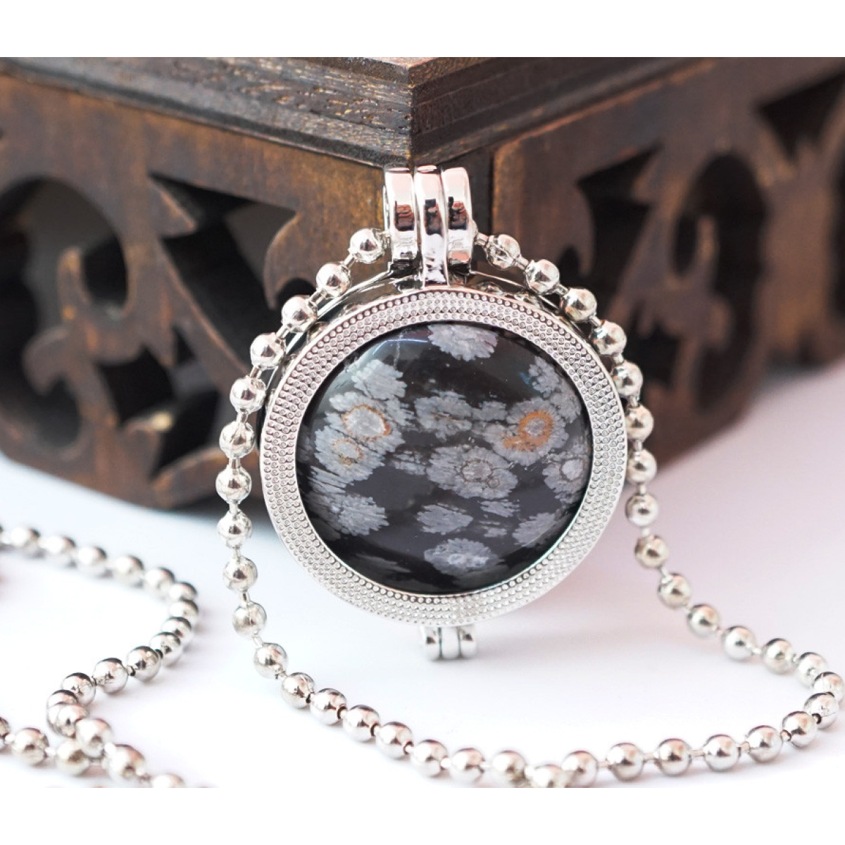 Кулон коробочка Дерево Життя вставка Сніговий обсидіан
