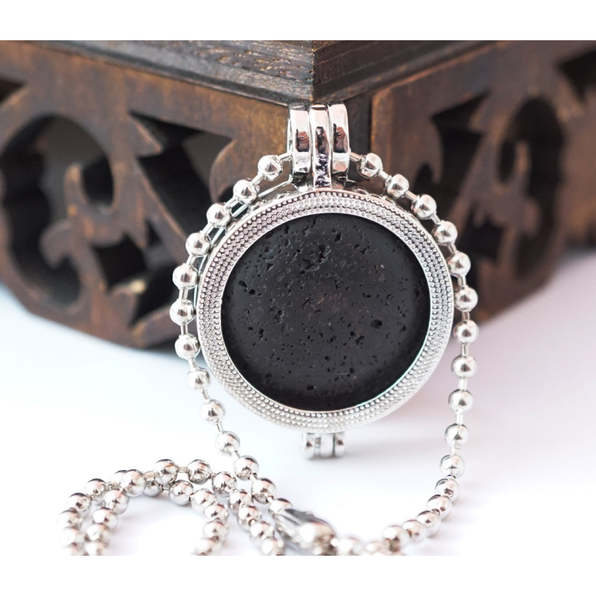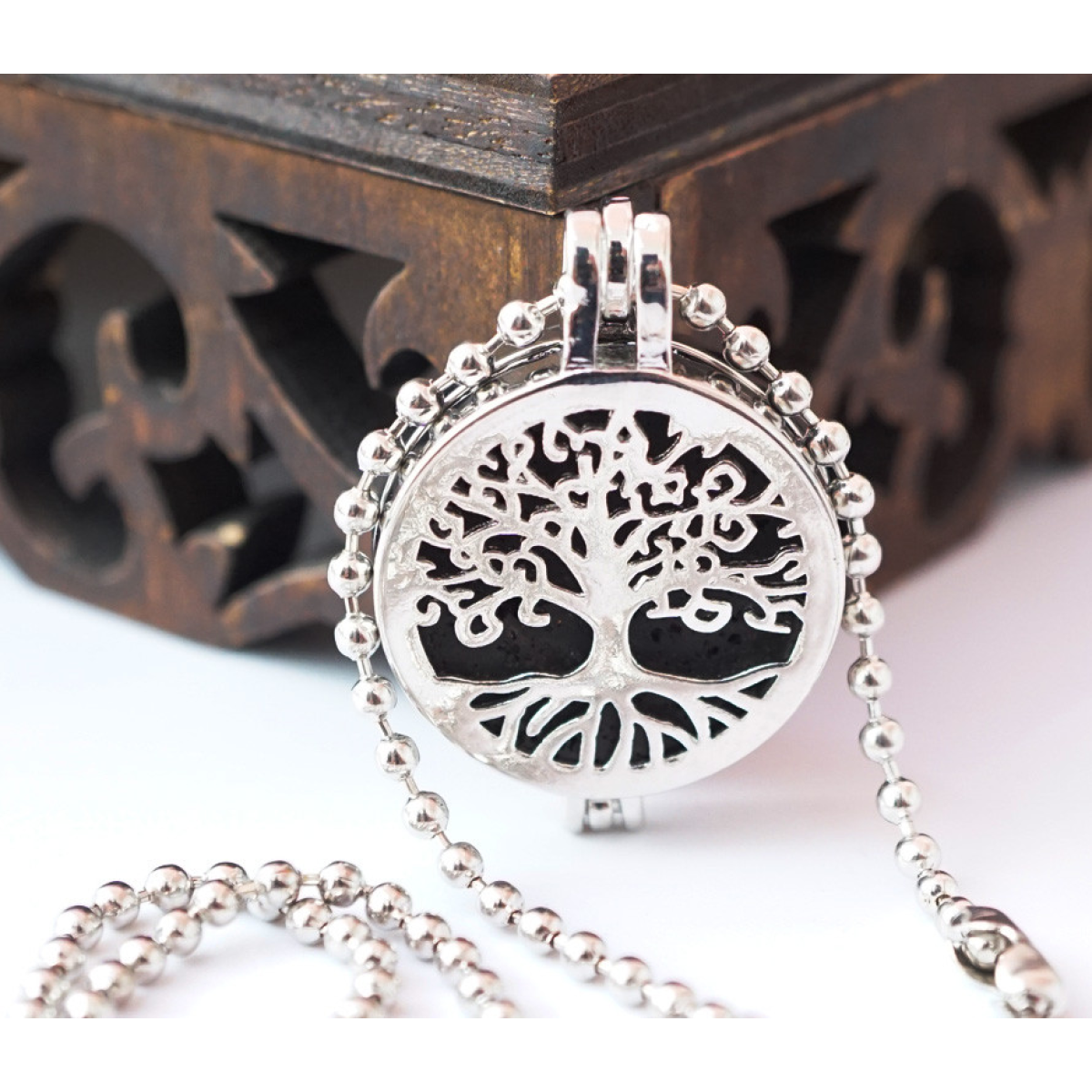 Кулон коробочка Дерево Життя вставка Лавовий камінь