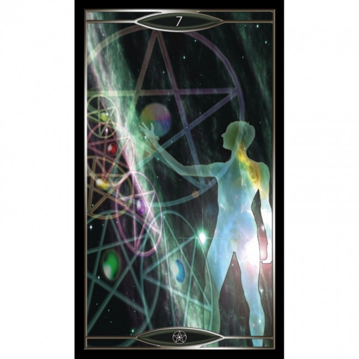 Унікальне Таро, в якому з“єднані Фізика та Таро. Квантова Таро досліджує різні аспекти сучасної фізики, здебільшого поєднуючи космічний простір і візуально яскраві барвисті карти. Квантове Таро досліджує полярні крайнощі сучасної фізики - непредставні межі космосу та ультрамікроскопічний світ субатомного простору через 78 візуально чудових карт. Колода прагне передати поетичний та символічний вираз сухої теорії науки. Ласкаво просимо у світ Квантового Таро 2.0, що є Таро Нової Фізики. На цьому шляху через час, простір і Таро ви зіткнетеся з квантовою механікою, досліджуєте дивний мікросвіт атома, здивуєтеся картинам народження та смерті зірок і, можливо, відкриєте щось нове у собі. У Квантовому Таро сучасна наука зустрічається із давньою духовною системою карт Таро. Зображення для цих карт взяті з двох світів, що кардинально розрізняються - великих просторів космосу і неймовірно малого світу атомів і елементарних частинок. Ці крайнощі охоплені двома революційними ідеями 20-го століття: квантовою механікою та теорією відносності Ейнштейна. Старші Аркани фокусуються цих двох теоріях, а Молодші Аркани відбивають прояви, що вони описують; дивні світи нейронних та наднових зірок, чорних дірок, нейтрино та антиматерії. Фігурні карти по-новому, через лінзи науки, розглядають знайомі містичні архетипи нічного неба – планети та сузір“я. Наукове знання не є необхідною умовою для використання цієї колоди Таро. В інструкції наведено короткий опис основного значення кожної карти колоди.Для тих, хто хоче заглянути трохи глибше, у книжці-інструкції є просунутий курс, що розкриває зв“язок класичного значення карт Таро та зображень на них, навіяних сучасним науковим знанням. У колоді широко використані зображення, отримані космічним телескопом Хаббл. Автори: Kay Stopforth, Chris Butler Художник: Chris Butler Виробництво: Італія Мова карт: англійська Розмір карт: 6,6 см x 12 см Традиція: Унікальна Молодші аркани: ілюстрації Масти: жезли, чаші, мечі, пентаклі Карти двору: Паж, Лицар, Дама, Король