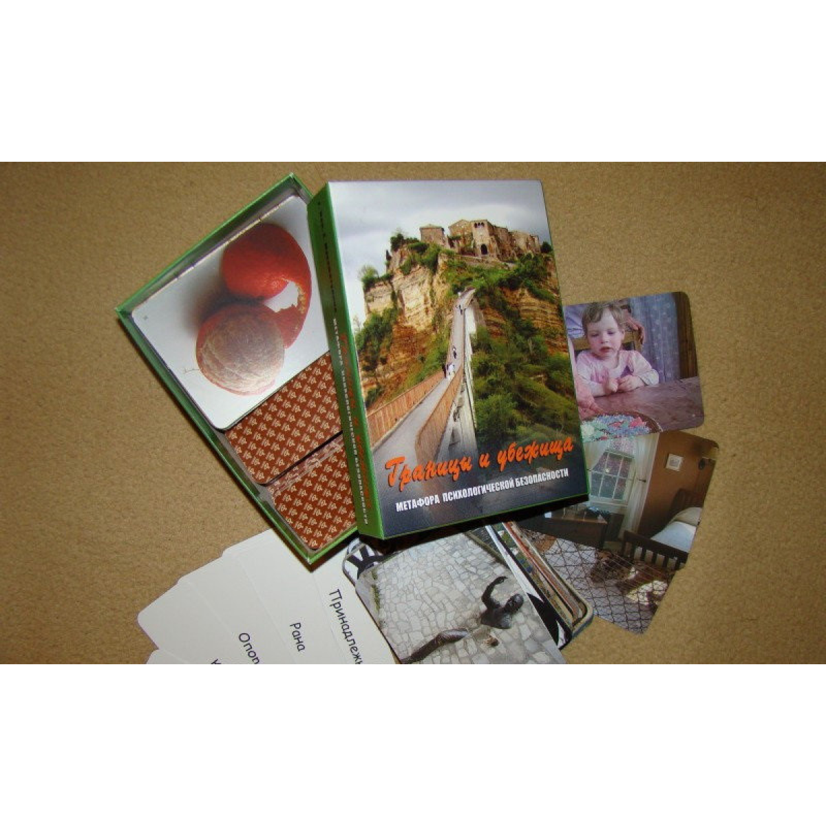 Карти в цій колоді образно виражають і межі-лінії, і почуття безпеки, що захищається цими кордонами. Саме тому колода має подвійну назву - “Кордони та Притулки“. За цим стоять два психологи, що цікавлять питання: 1.Як ми захищаємось? (Які межі встановлюємо у різних життєвих ситуаціях, при взаємодії з різними людьми? Як обмежуємо свою територію?) 2. Що ми захищаємо? (Куди ми тікаємо? Де почуваємося захищеними? Яка ця територія?) Психологам-практикам доводиться стикатися з межею дуже часто. Дитячі психологи хочуть зрозуміти, які межі встановлюють їхні маленькі клієнти батьки. Шкільні психологи свідчать, що учень повинен навчитися приймати авторитет і правила дорослого світу, але водночас і формувати межі власного Я, захищаючи свій особистісний і фізичний простір. До психотерапевтів часто звертаються люди, які не відчувають себе в безпеці, страждають через порушення кордонів. Словом, ця тема актуальна для будь-яких психологів - з яким би віком і в якій концепції вони не працювали. У цій колоді, порівняно з попередніми, є дві нововведення: для зручності використання карток (наприклад, для протоколювання сесії або просто для розуміння, чи всі картки на місці, і якщо якісь загубилися, то які саме) всі карти цієї колоди пронумеровані. Ми наполягаємо на тому, що цифра на картинці не має жодного відношення до зображення і не несе абсолютно ніякого сенсу, крім технічного. отношения к изображению и не несет решительно никакого смысла, кроме технического.