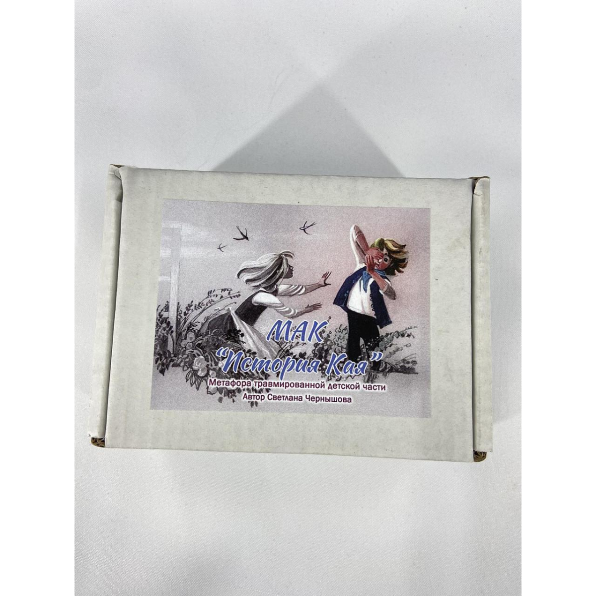 Колода «Історія Кая» - це колода для роботи з травмованою дитячої частиною. Крім роботи з травмованою дитячої частиною, колода чудово підійде для терапії будь-якого життєвого запиту, для роботи з станами, емоціями і ресурсами. Назва колоди «Історія Кая» вибрано не випадково. Кай з казки Ганса Хрістіана Андерсона «Снігова королева» являє собою якусь метафору травмованої дитячої частини, а уламки Кривого Дзеркала – метафору травмуючого події, що залишив слід в Душі. Саме ця ідея закладена в концепцію даної колоди. Колода складається з двох частин: картинки та карти — осколки. Карти із зображеннями виготовлені в м“яких пастельних тонах, у них можна побачити як ресурс і підтримку, так і те, що вимагає уваги та терапії. Ця частина колоди універсальна. Картинки являють собою якісь образи та сюжети, що схожі на щось сновідчу реальність, у чомусь вказують на дитячі спогади, у чомусь представляють сумні казкові метафори. Ці образи, повні символізму дуже добре працюють як із травмувальним досвідом, так і з пошуком ресурсів, необхідних для життя. Особливістю даної колоди є текстові карти-осколки, що представляють собою метафору травмуючого стану. Вони є дуже важливим включає елементом для пошуку причини дитячого болю і ідеально доповнюють роботу з колодою. Класифікація колоди – універсальна/ казкова /сюжетна/абстрактна /ресурсна/спеціальна Структура колоди: *методичка (инструкция) * 50 картинок размером 100*70мм *30 тестовых карт – осколков *коробочка Колода предназначена для индивидуальной и групповой роботи як універсальна колода МАК (без використання уламків), так і для роботи з травмованою дитячою частиною. Може використовуватися в роботі не тільки з дорослими, а й із дітьми та підлітками. Колода рекомендована до використання в діагностичній та корекційній роботі практичного психолога, психотерапевта, дитячого та сімейного психолога, ігропрактика тощо. МАК «Історія Кая» працює із запитами: травматичний досвід і його наслідки, кризі, дитячі травми, виховання внутрішнього батька, перебування ресурсів, розуміння себе та своїх потреб, розвиток емоційної сфери. Колоду можна використовувати в комплекті з МАК “Скарби Герди.Сила внутрішніх ресурсів“. Вони чудово доповнюють один одного.